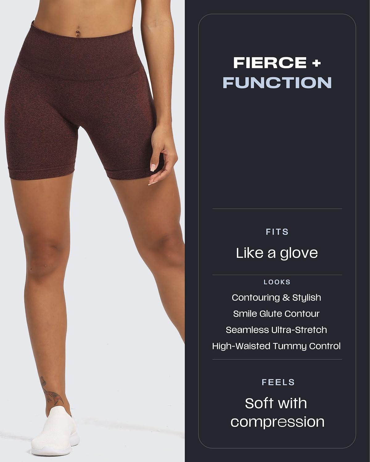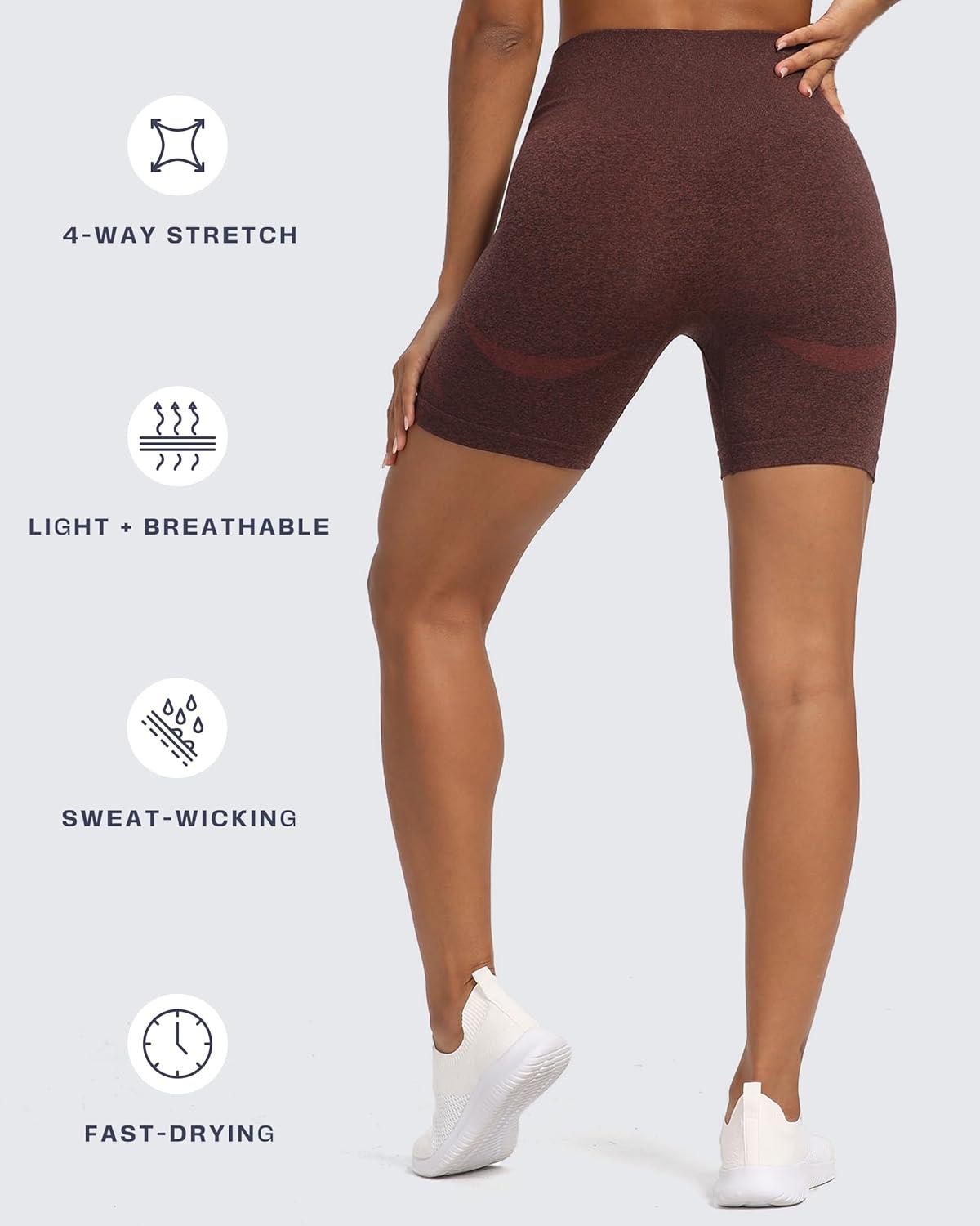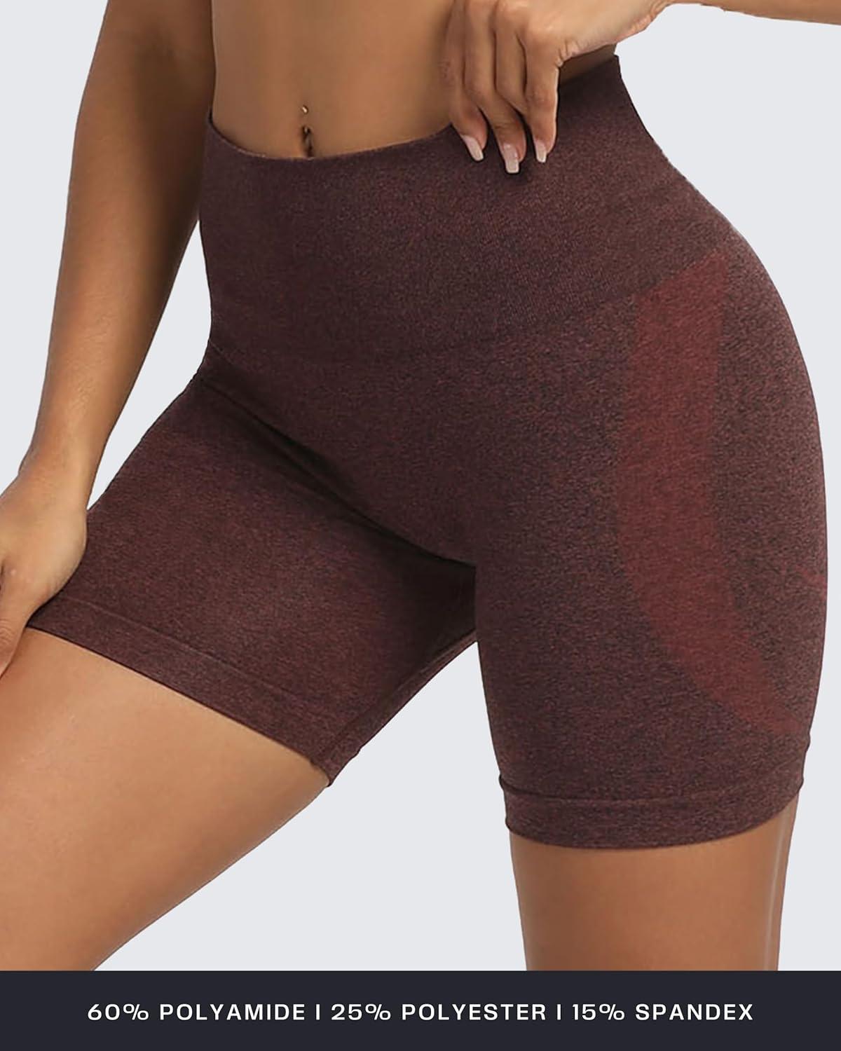 Aoxjox Booty Contour Seamless Workout Biker Shorts for Women Tummy Control High Waisted Athletic Running Yoga Short 5"(A Cherry Brown Marl)