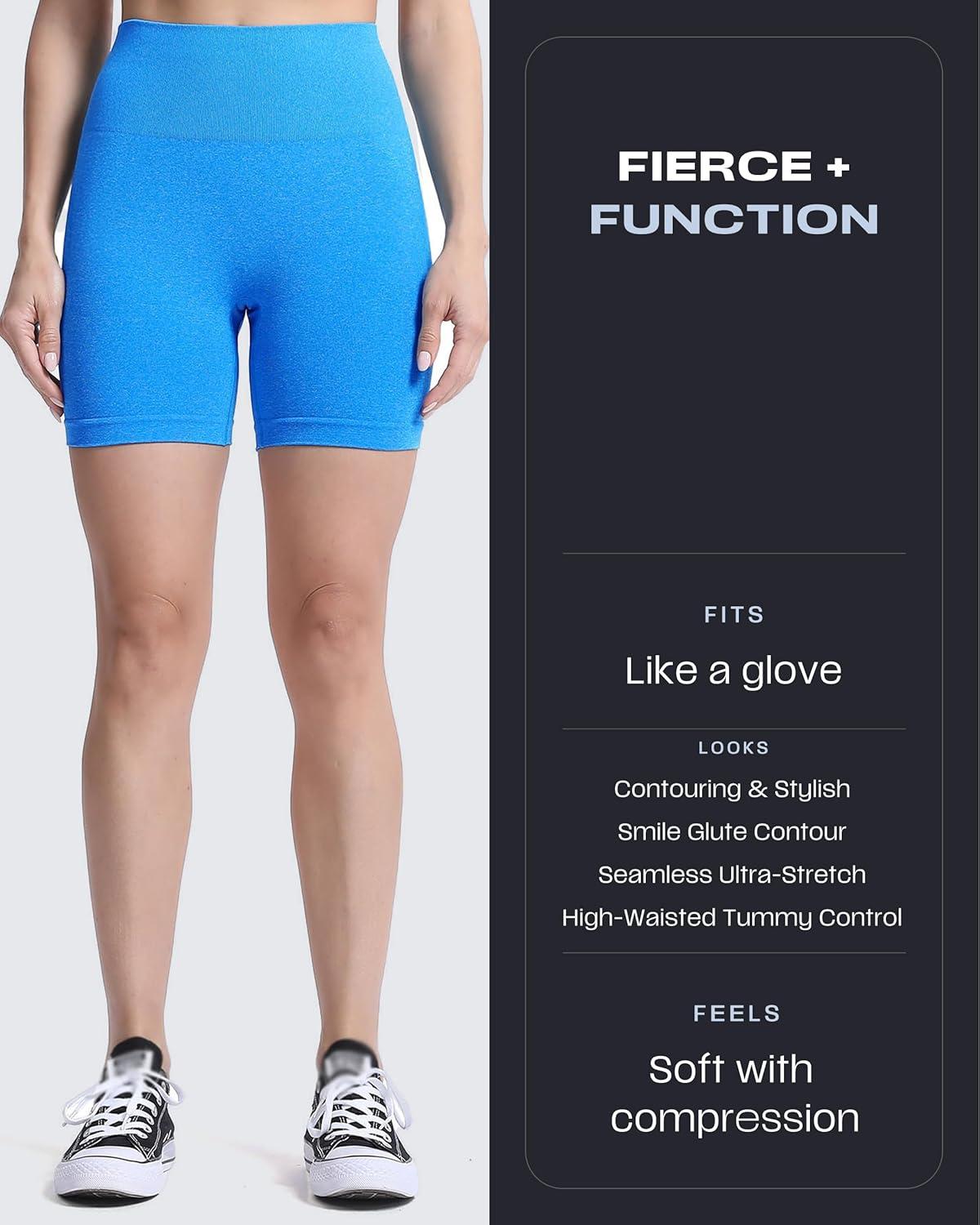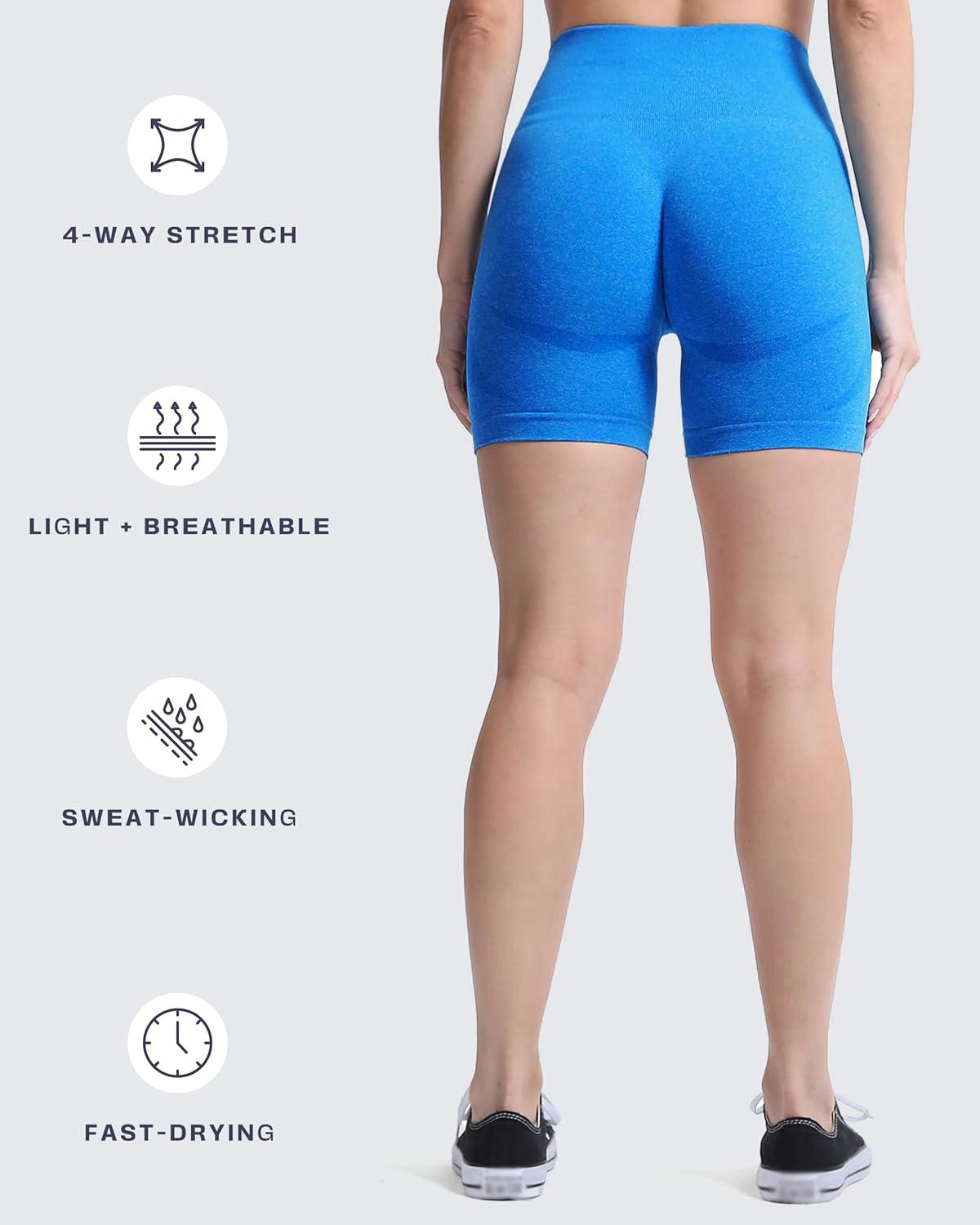 Aoxjox Booty Contour Seamless Workout Biker Shorts for Women Tummy Control High Waisted Athletic Running Yoga Short 5″(A Directoire Blue Marl)