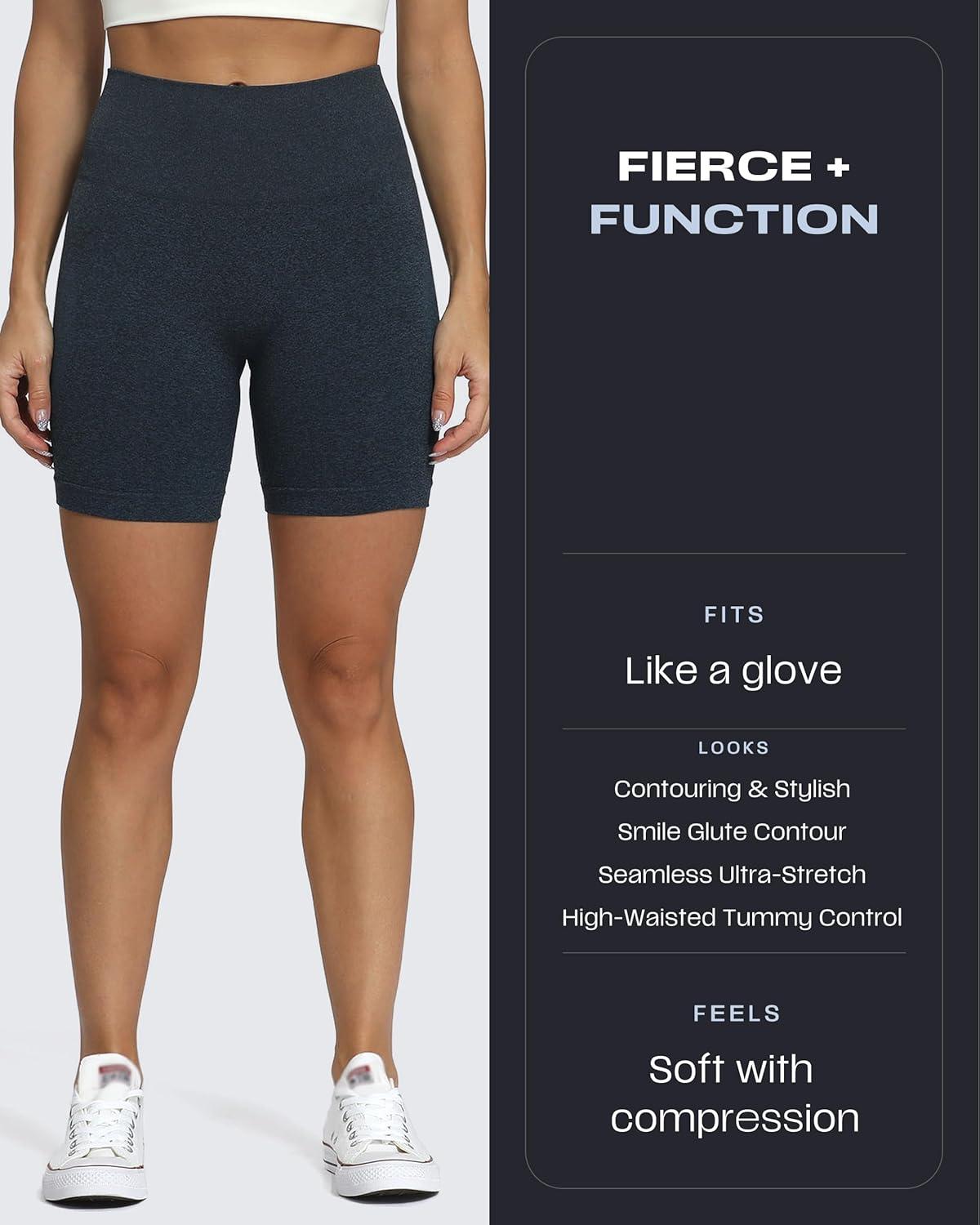 Aoxjox Booty Contour Seamless Workout Biker Shorts for Women Tummy Control High Waisted Athletic Running Yoga Short 5″(A Navy Marl)