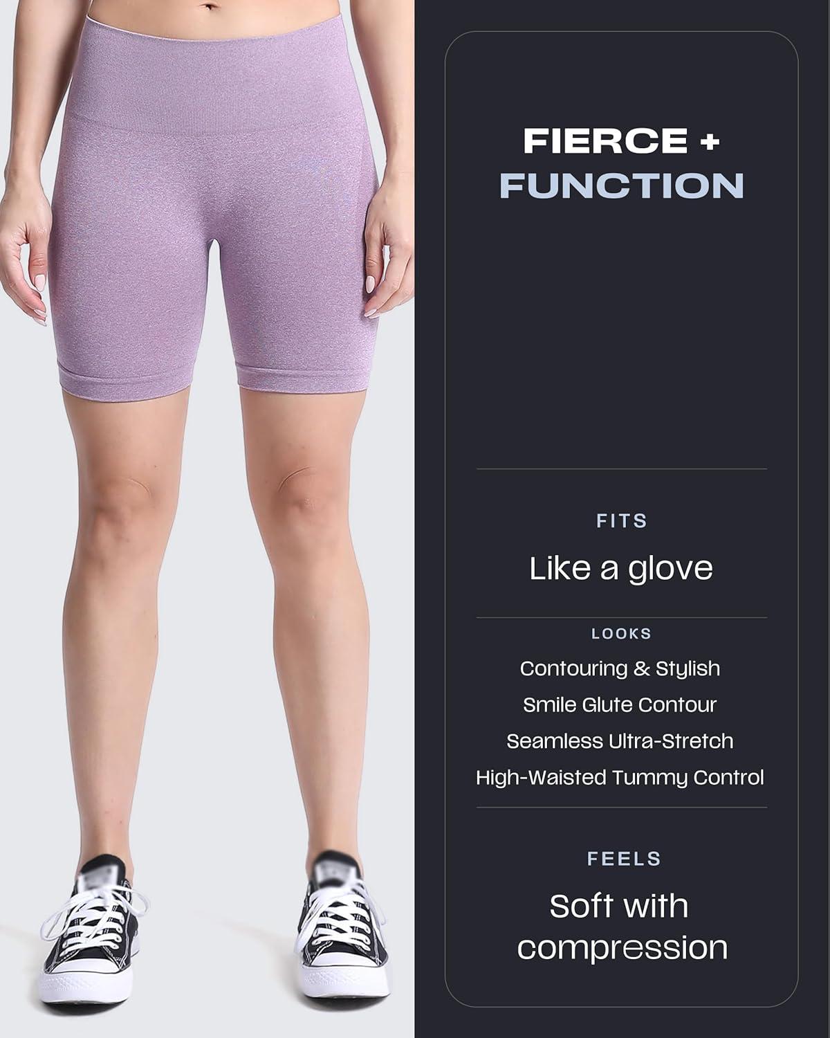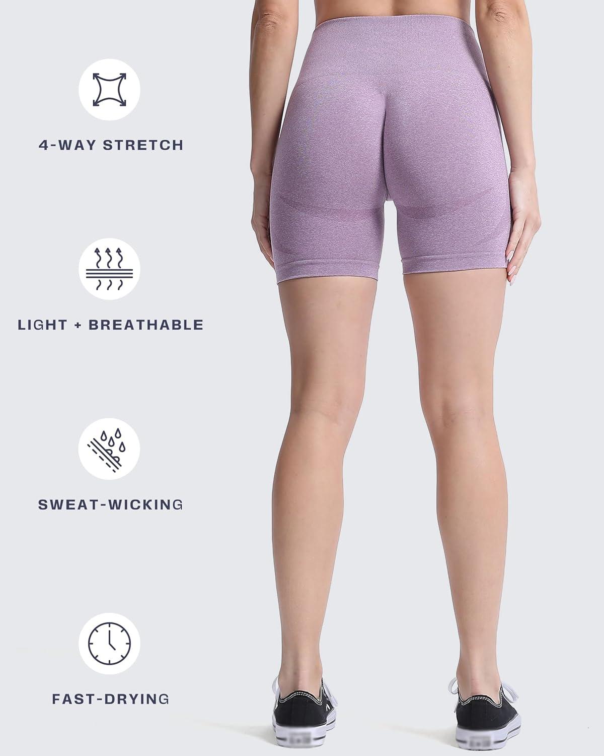 Aoxjox Booty Contour Seamless Workout Biker Shorts for Women Tummy Control High Waisted Athletic Running Yoga Short 5″(Berry Conserve Marl)