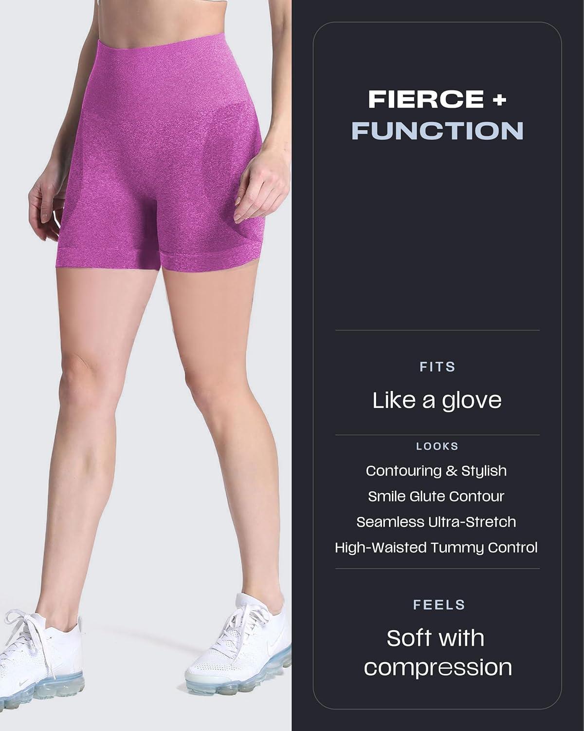 Aoxjox Booty Contour Seamless Workout Biker Shorts for Women Tummy Control High Waisted Athletic Running Yoga Short 5"(Cattleya Purple Marl)