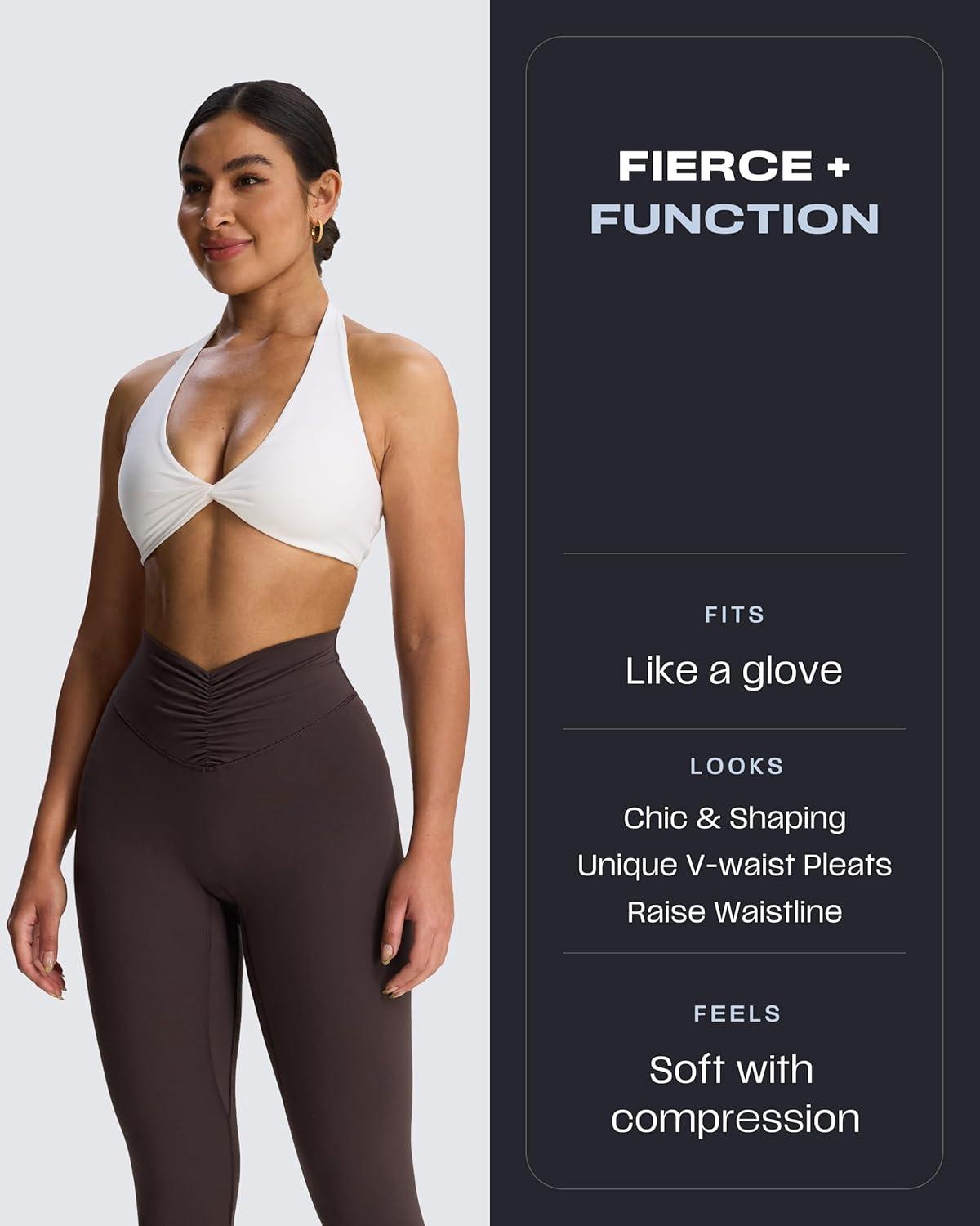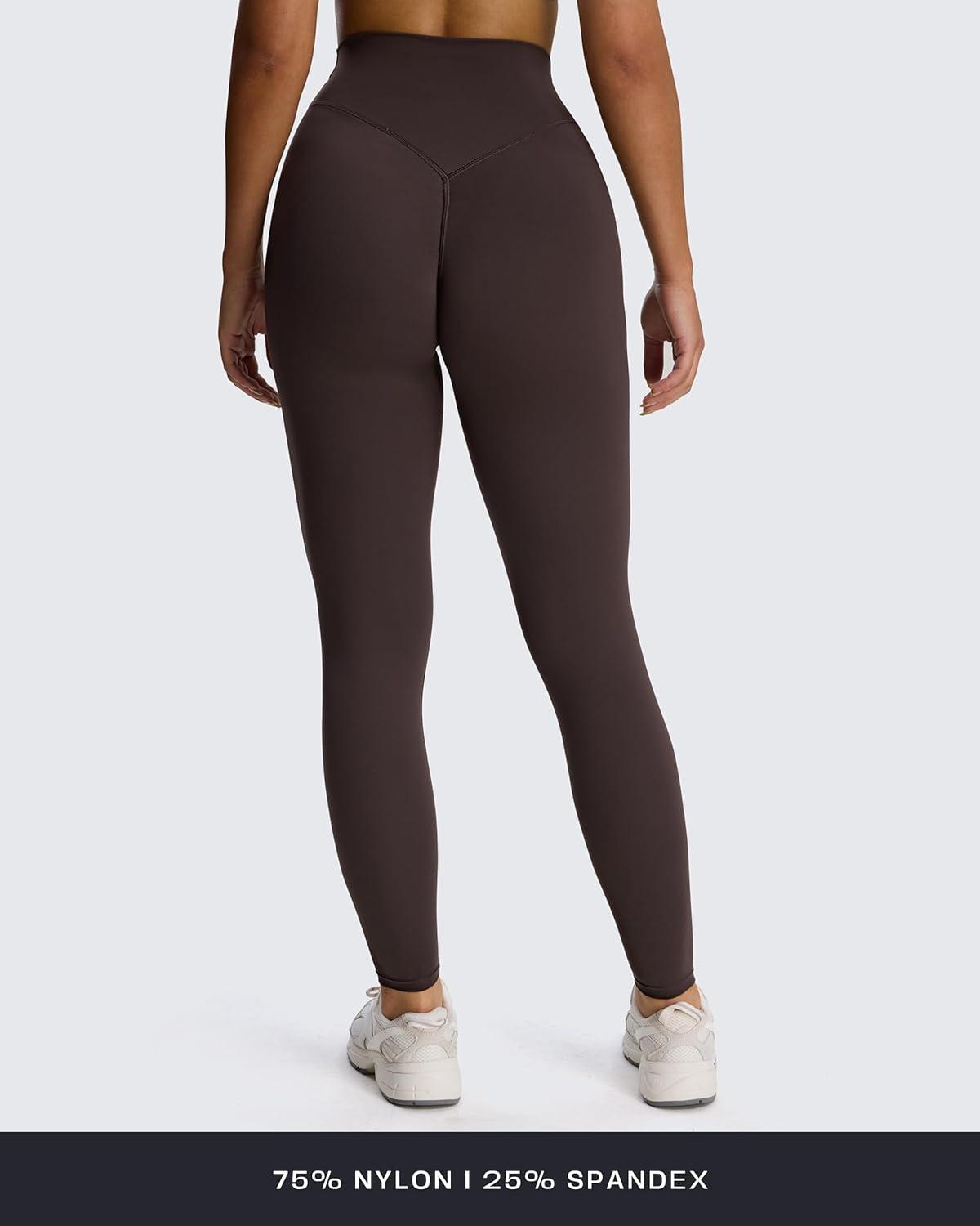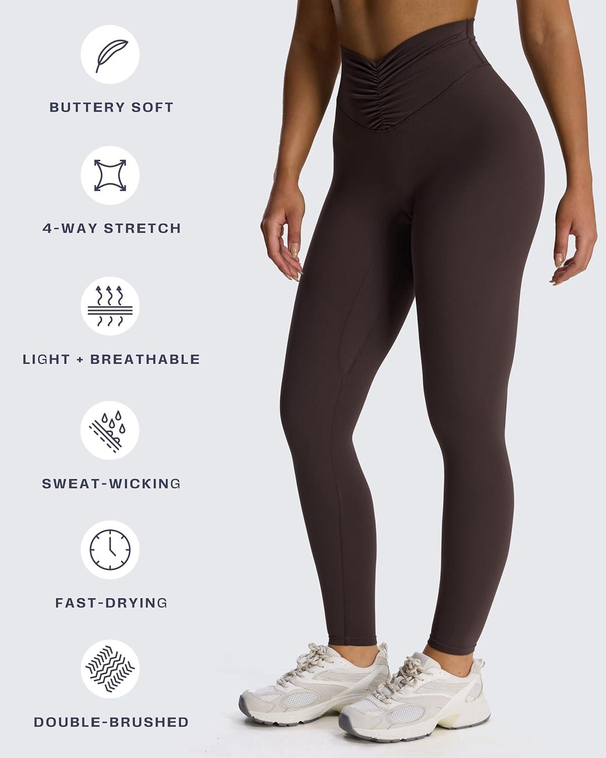 Aoxjox High Waisted Workout Leggings for Women Hidden Scrunch V Waist Front Illusion Ruched Athletic Yoga Pants 26″(Mulch)