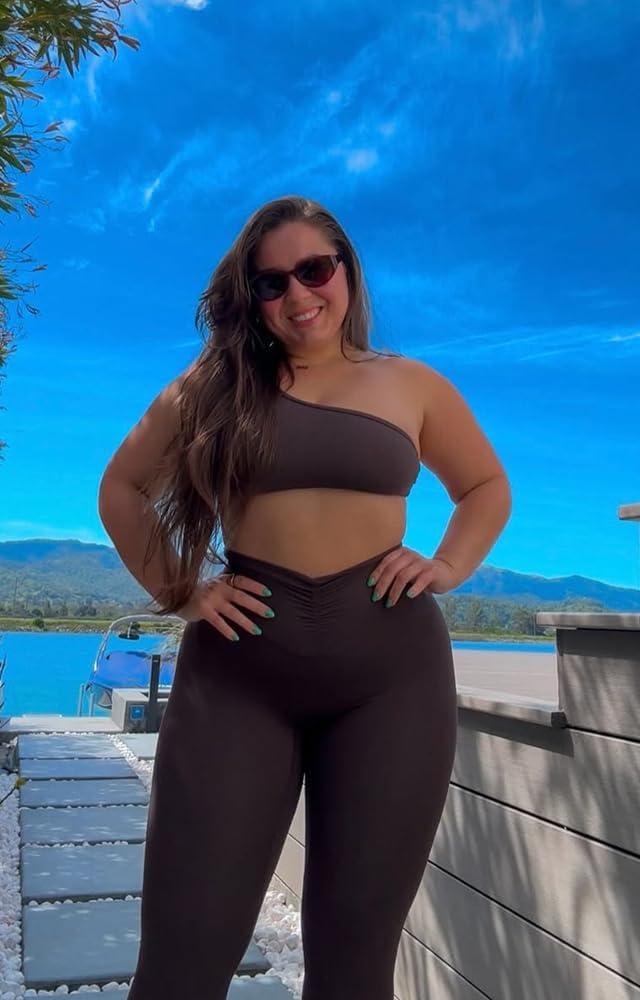 imageAoxjox High Waisted Workout Leggings for Women Hidden Scrunch V Waist Front Illusion Ruched Athletic Yoga Pants 26quotMulch