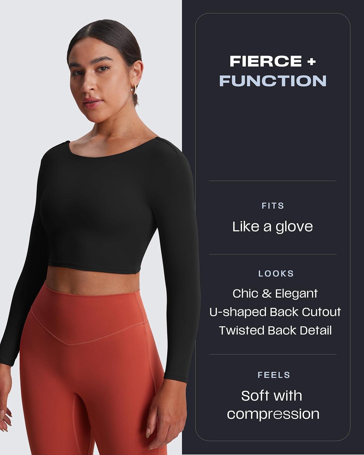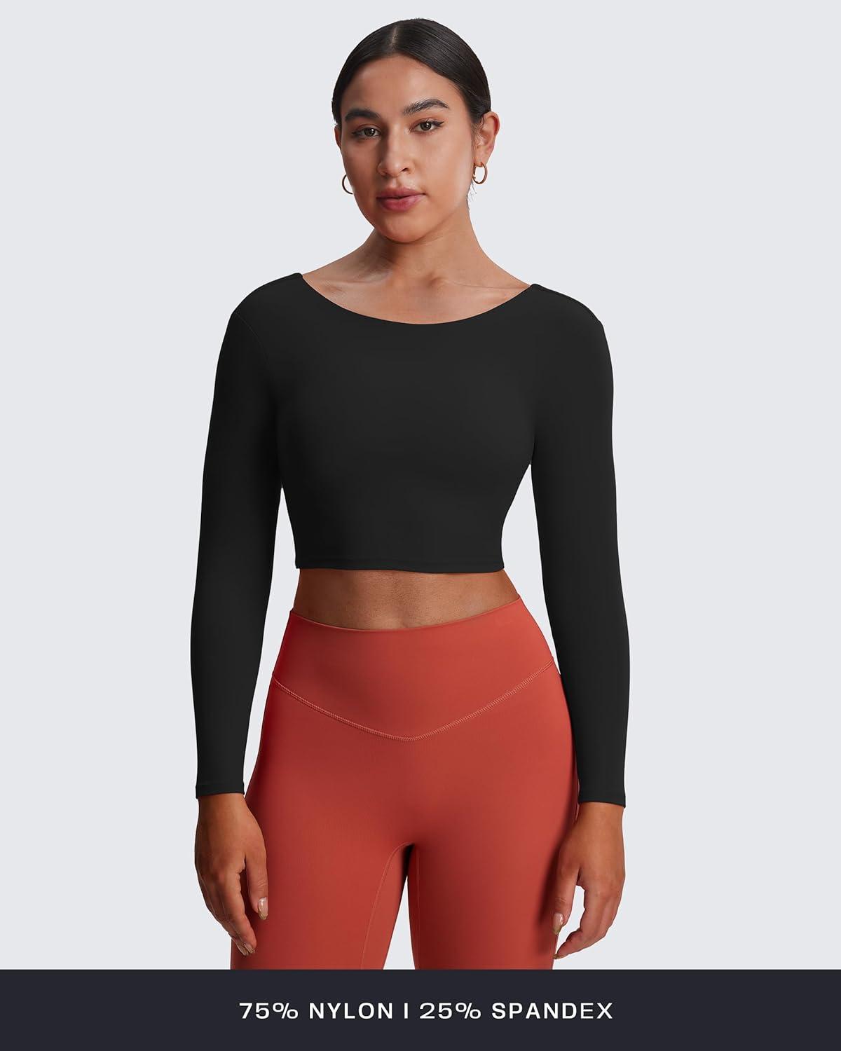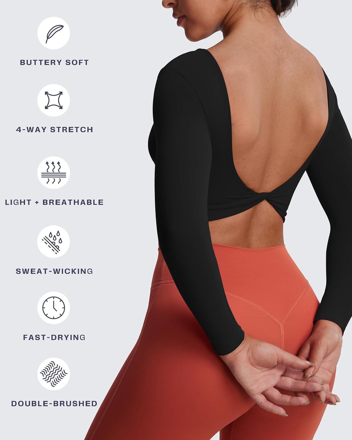 Aoxjox Long Sleeve Crop Tops for Women Emma Twist Back Workout Cropped T Shirt Top(Black)