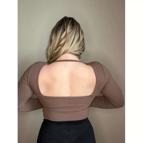 Aoxjox Long Sleeve Crop Tops for Women Square Hollow Back Workout Crop T Shirt TopFudge Coffee