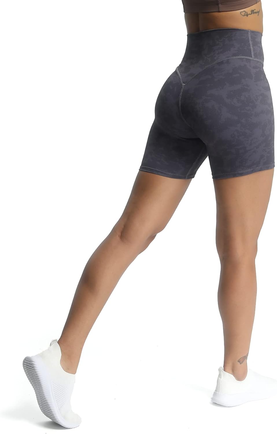 Aoxjox Metamorph Workout Biker Shorts for Women Tummy Control High Waisted Athletic Gym Running Deep V Yoga Shorts 6″(Cloud Fade Mocha)