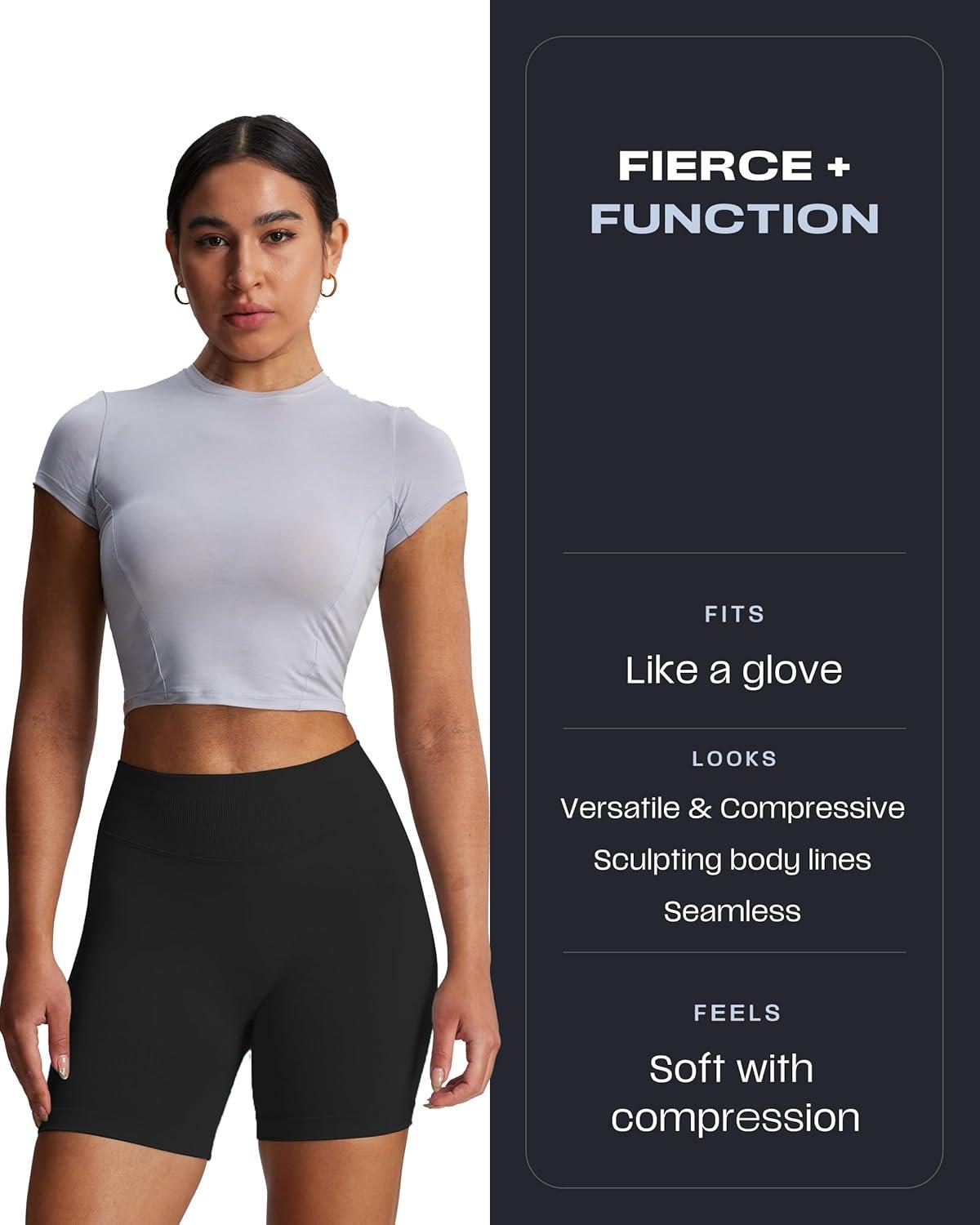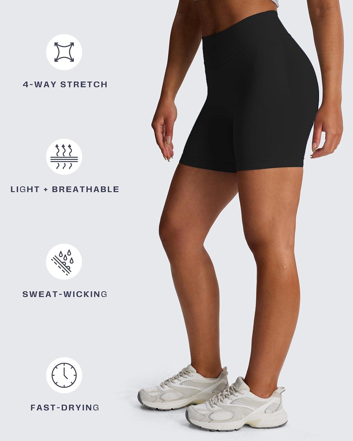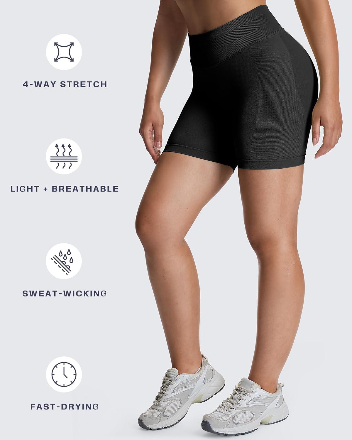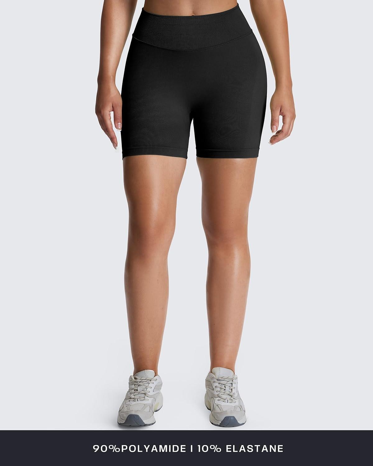 Aoxjox Seamless Biker Shorts for Women Impact Hidden Scrunch Low Waisted Athletic Yoga Short 3.5"/4.5"/5"/6"(Black)