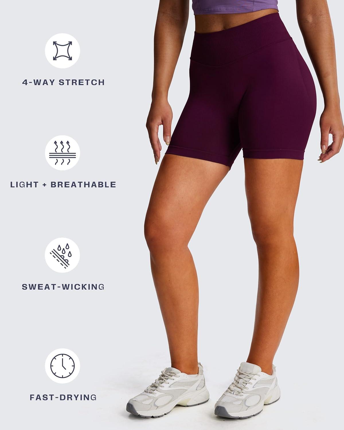 Aoxjox Seamless Biker Shorts for Women Impact Hidden Scrunch Low Waisted Athletic Yoga Short 3.5″/4.5″/5″/6″(Cherry Purple)