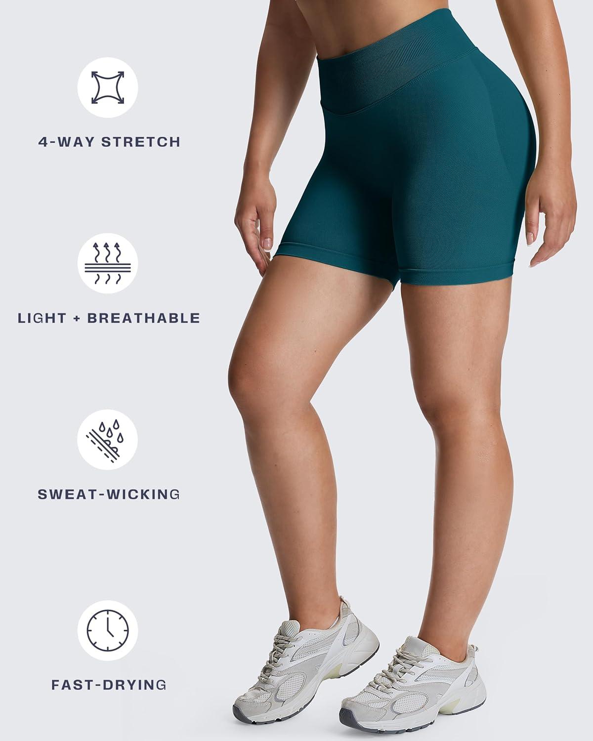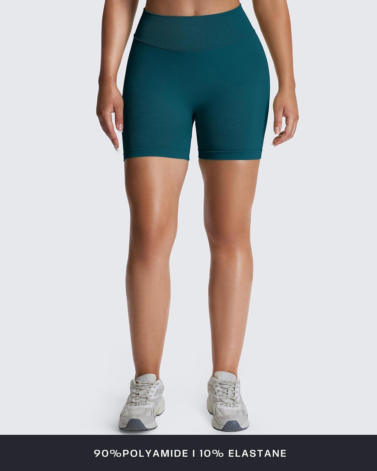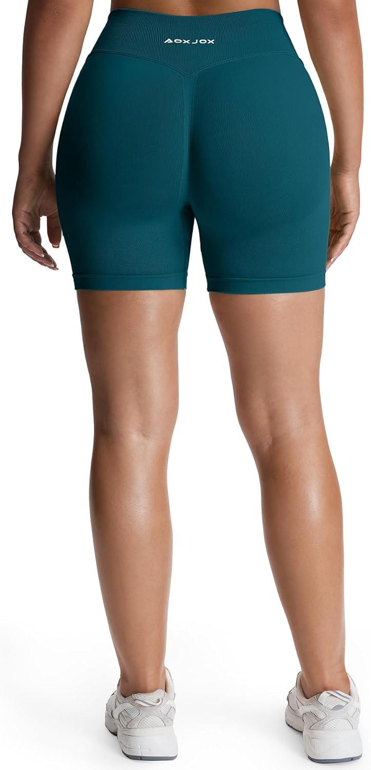 Aoxjox Seamless Biker Shorts for Women Impact Hidden Scrunch Low Waisted Athletic Yoga Short 3.5"/4.5"/5"/6"(Deep Blue Lagoon)