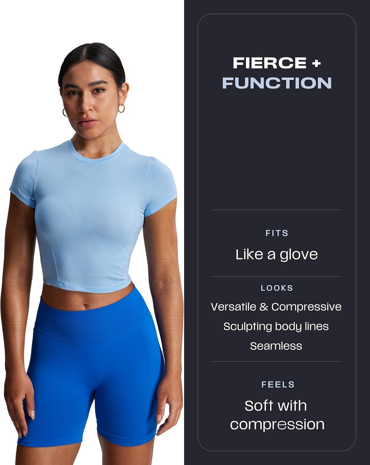 Aoxjox Seamless Biker Shorts for Women Impact Hidden Scrunch Low Waisted Athletic Yoga Short 3.5″/4.5″/5″/6″(Galaxy Blue)