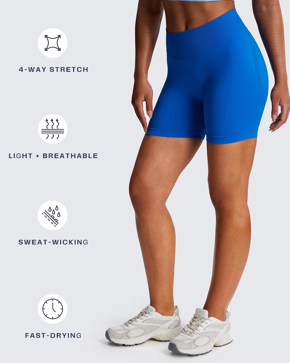 Aoxjox Seamless Biker Shorts for Women Impact Hidden Scrunch Low Waisted Athletic Yoga Short 3.5"/4.5"/5"/6"(Galaxy Blue)