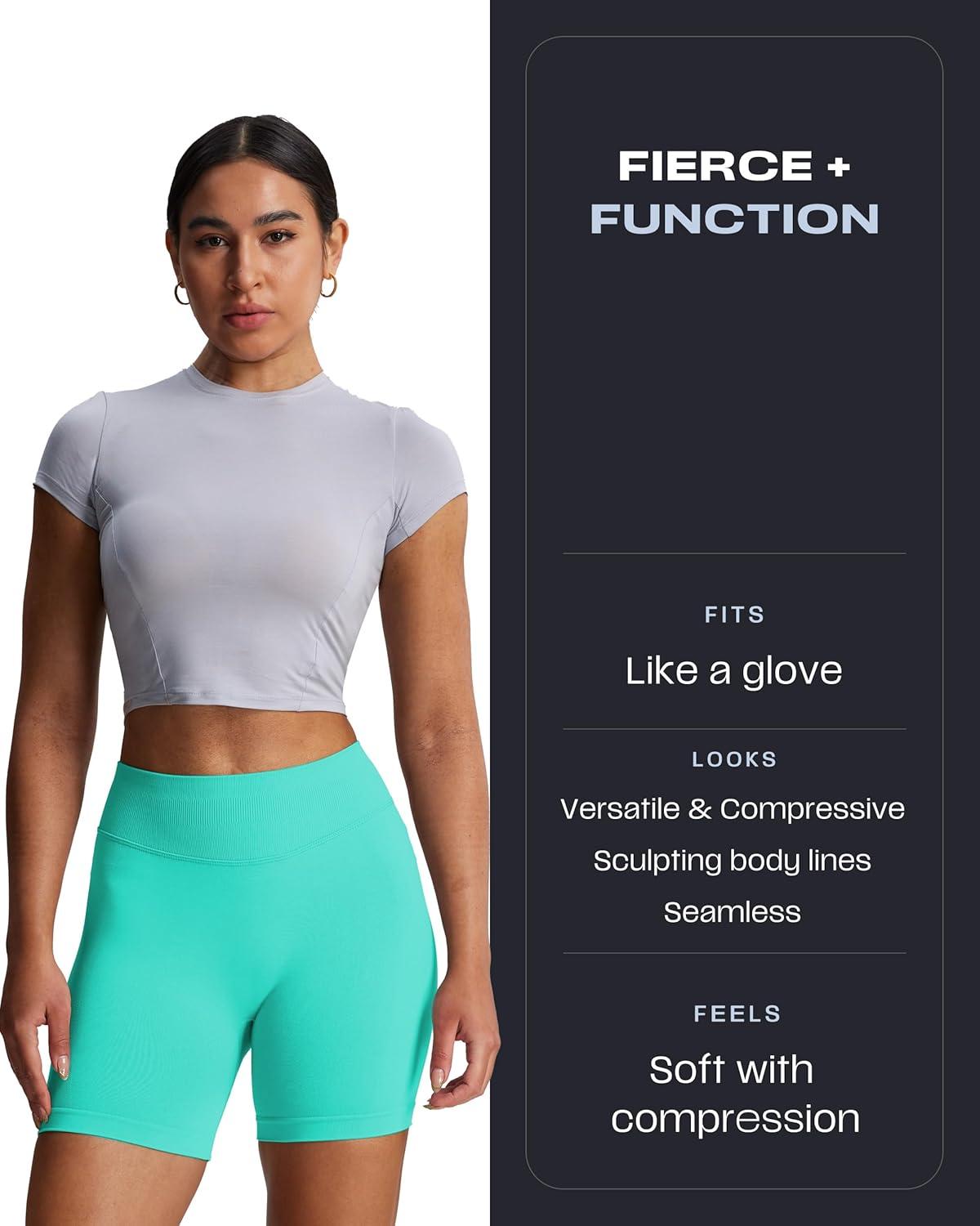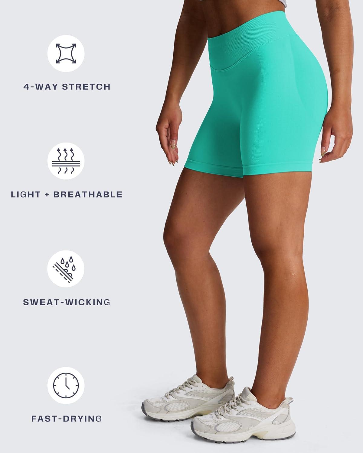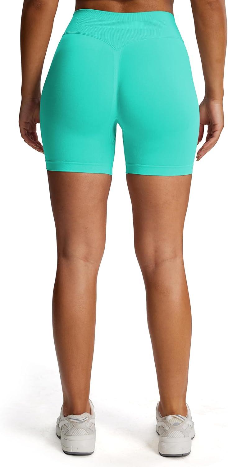 Aoxjox Seamless Biker Shorts for Women Impact Hidden Scrunch Low Waisted Athletic Yoga Short 3.5"/4.5"/5"/6"(Ice Mint)