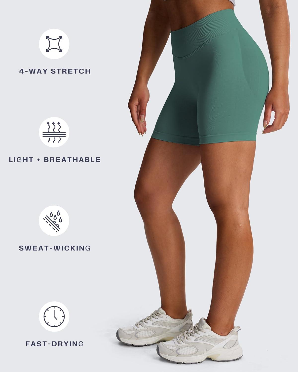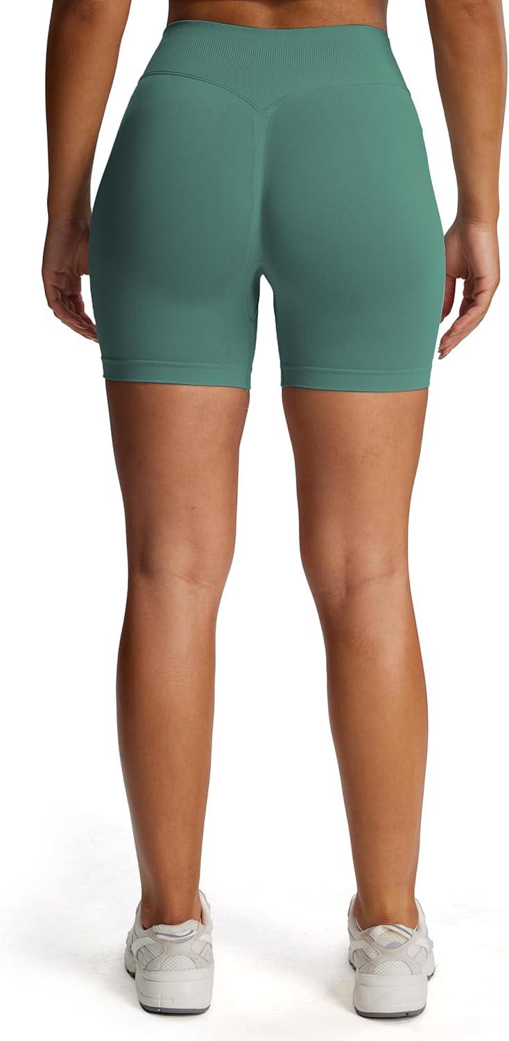 Aoxjox Seamless Biker Shorts for Women Impact Hidden Scrunch Low Waisted Athletic Yoga Short 3.5"/4.5"/5"/6"(Pistachio)