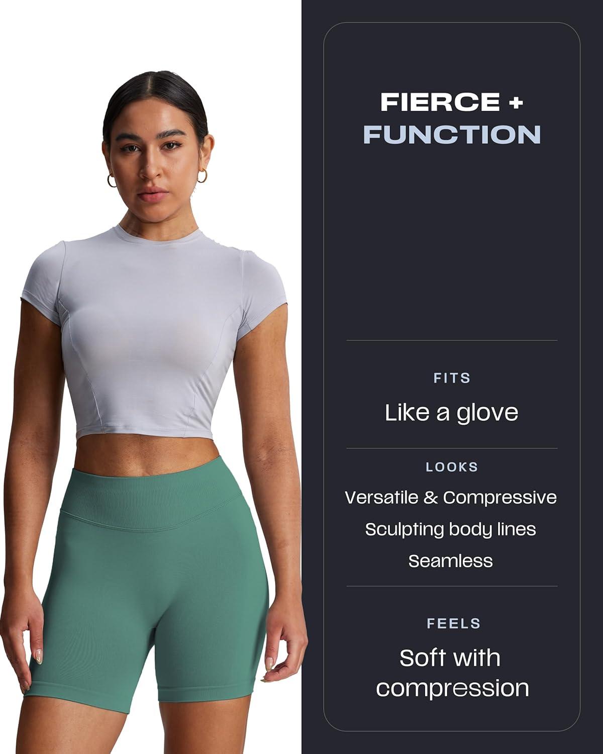 Aoxjox Seamless Biker Shorts for Women Impact Hidden Scrunch Low Waisted Athletic Yoga Short 3.5″/4.5″/5″/6″(Pistachio)