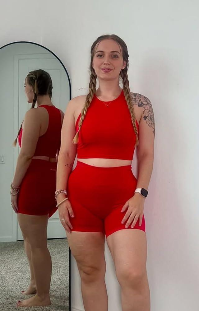imageAoxjox Seamless Biker Shorts for Women Impact Hidden Scrunch Low Waisted Athletic Yoga Short 35quot45quot5quot6quotScarlett Red