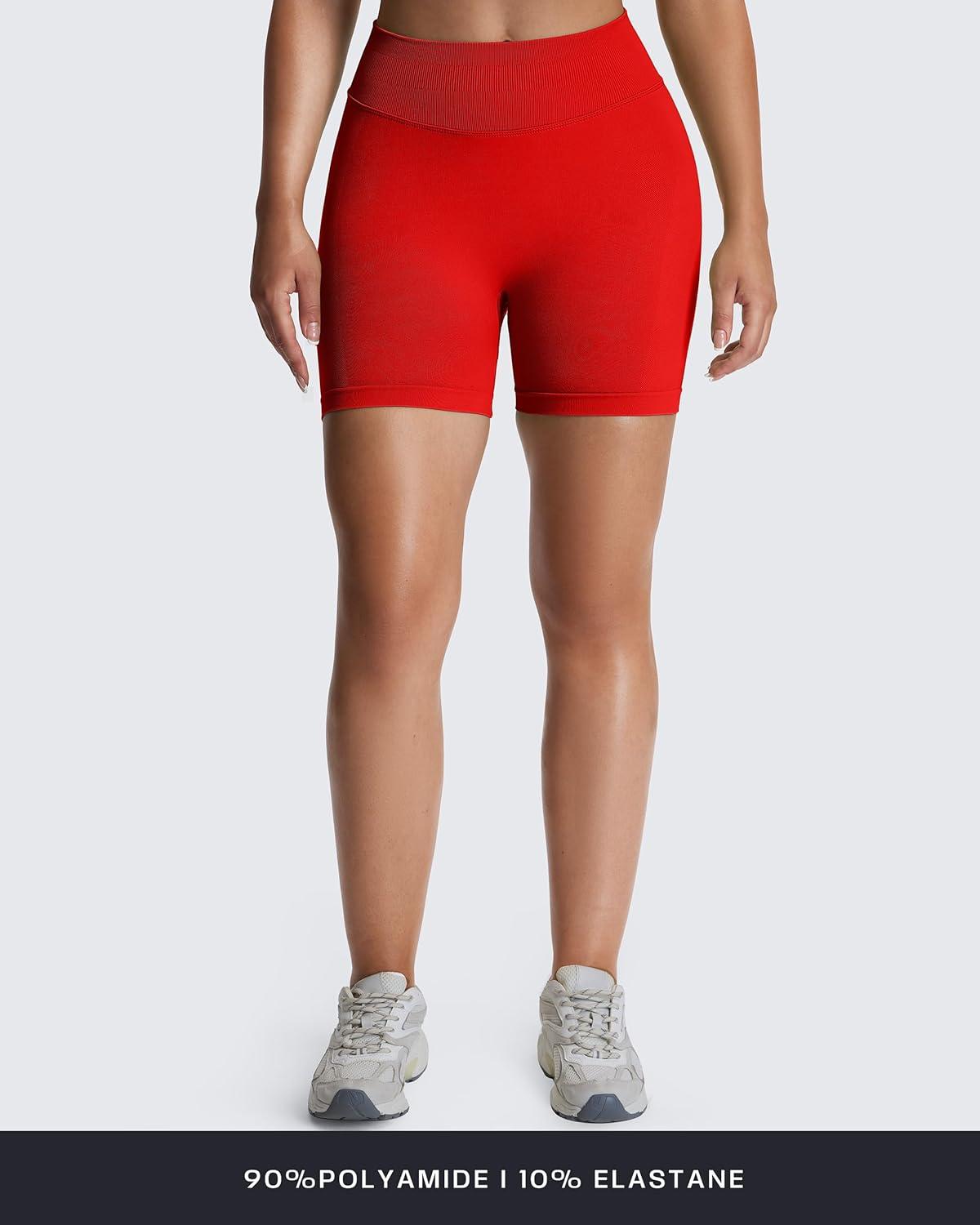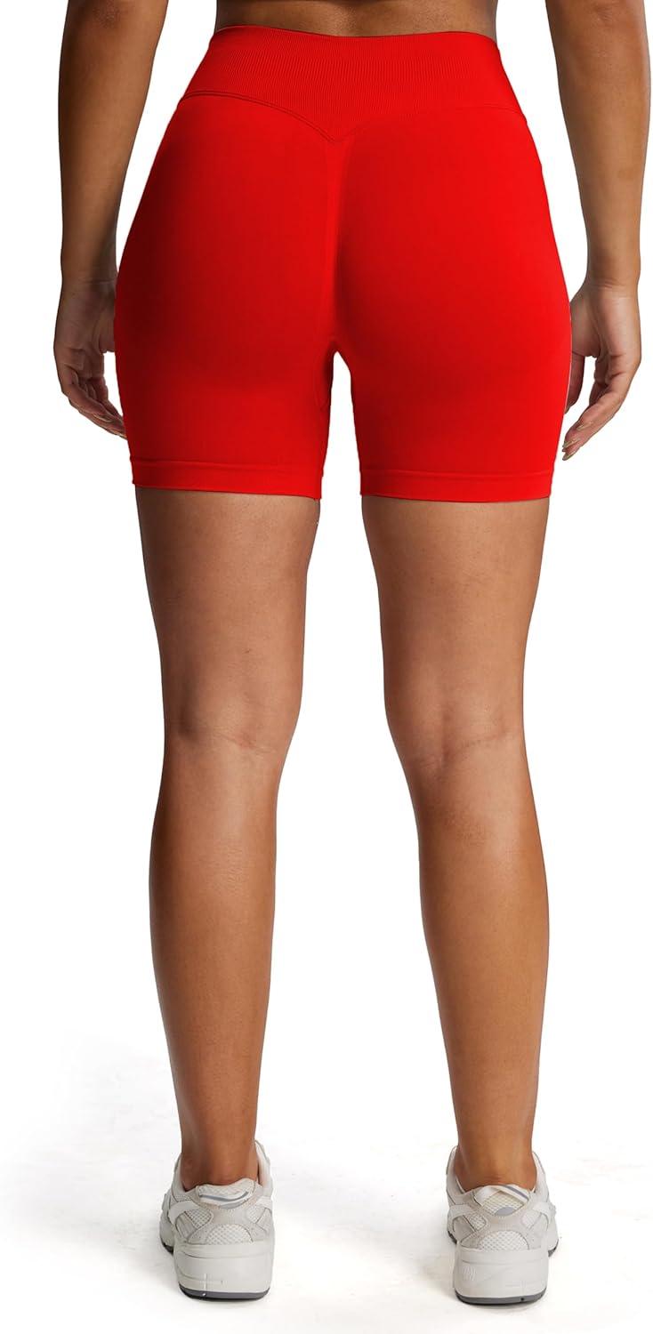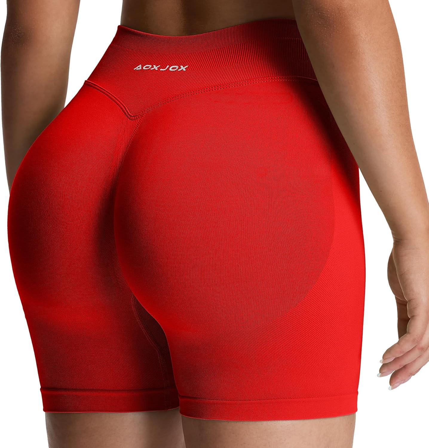 Aoxjox Seamless Biker Shorts for Women Impact Hidden Scrunch Low Waisted Athletic Yoga Short 3.5"/4.5"/5"/6"(Racing Red)