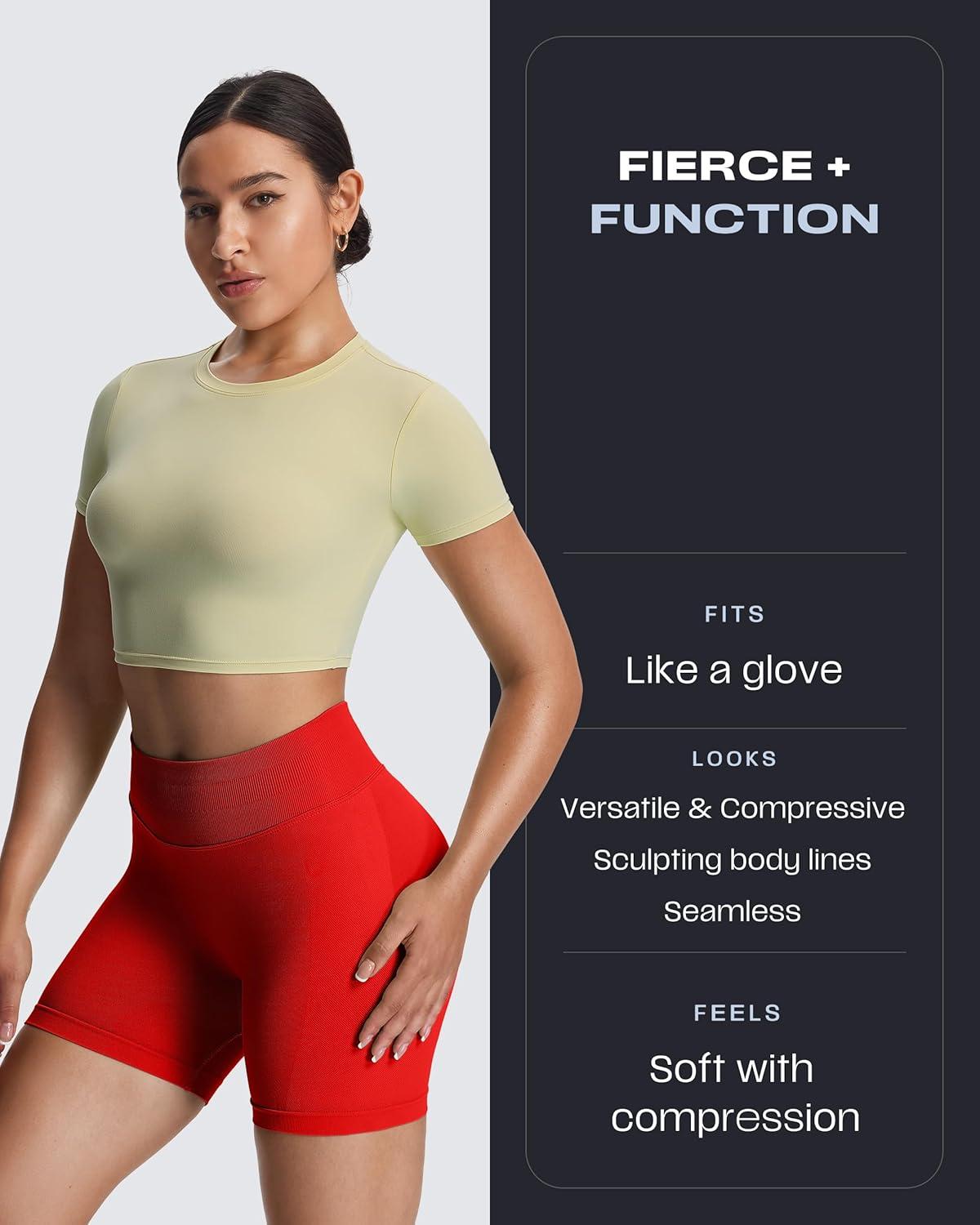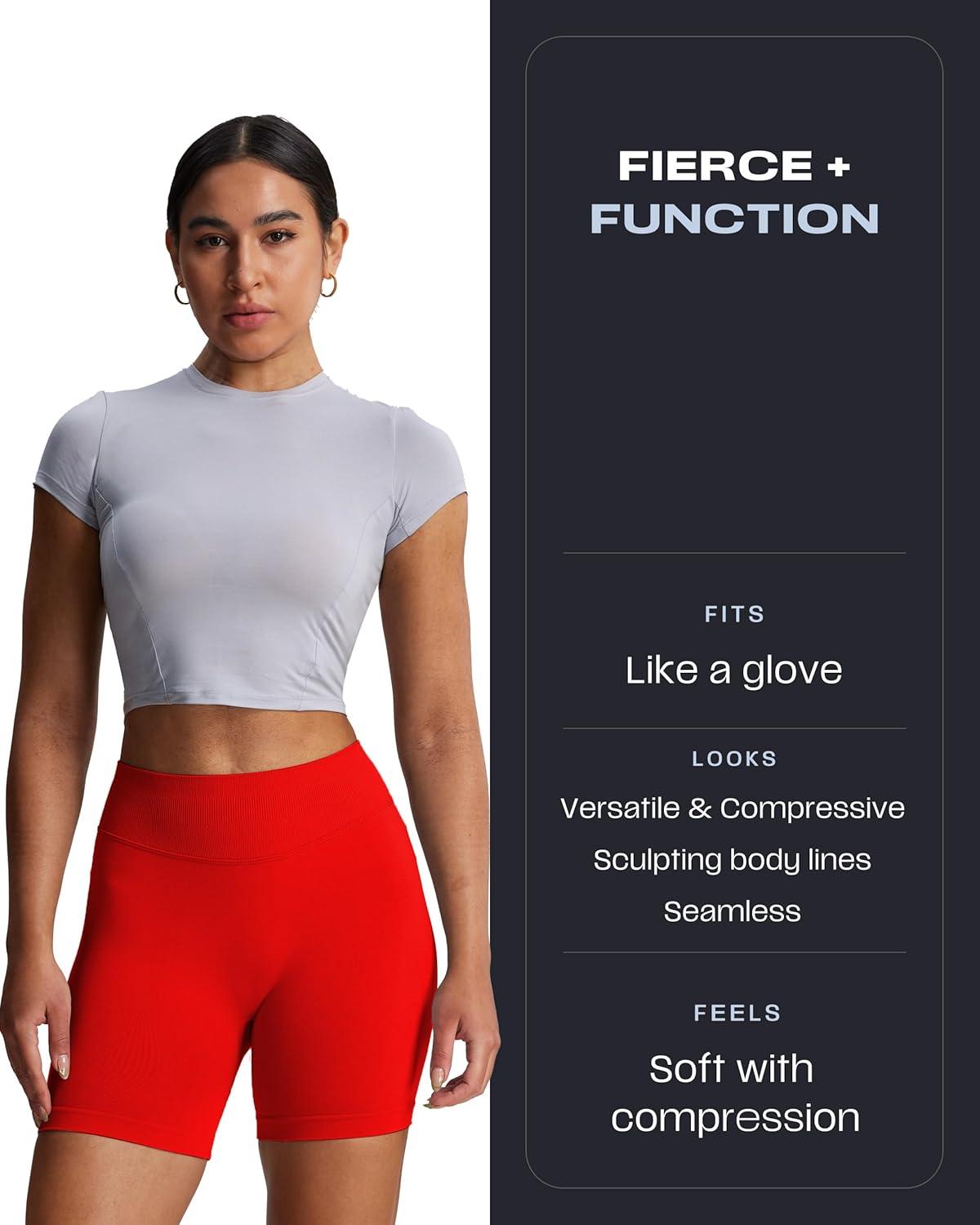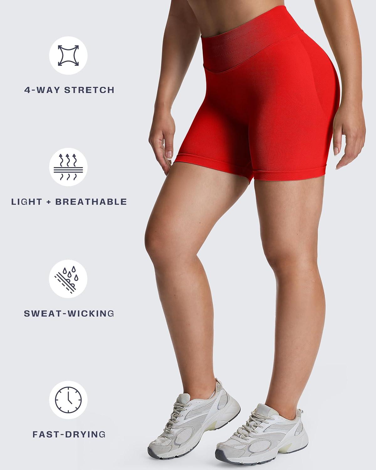 Aoxjox Seamless Biker Shorts for Women Impact Hidden Scrunch Low Waisted Athletic Yoga Short 3.5"/4.5"/5"/6"(Racing Red)