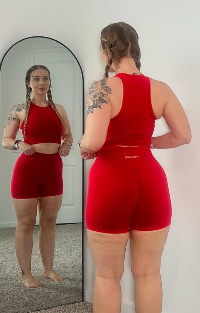 Aoxjox Seamless Biker Shorts for Women Impact Hidden Scrunch Low Waisted Athletic Yoga Short 3.5″/4.5″/5″/6″(Racing Red)