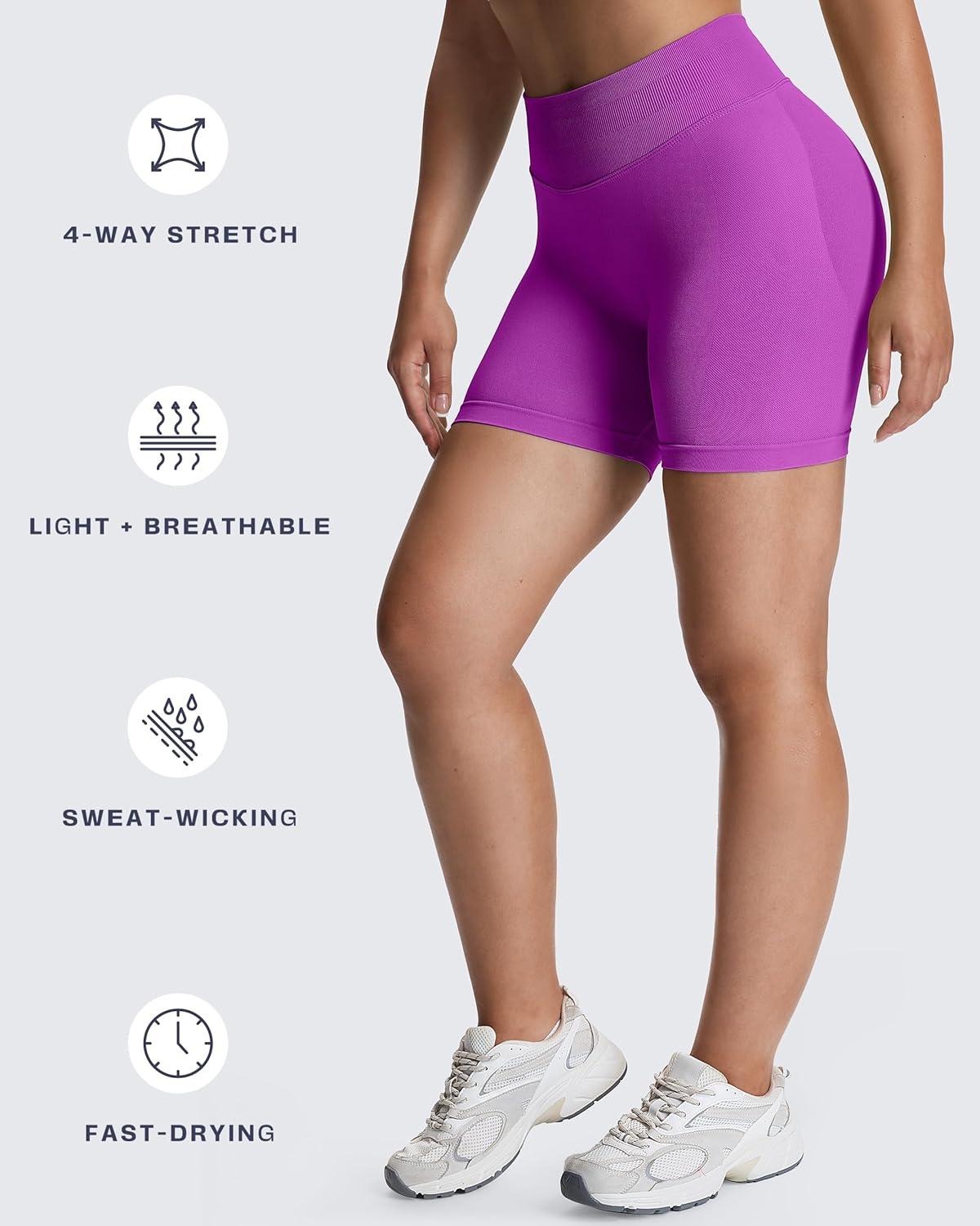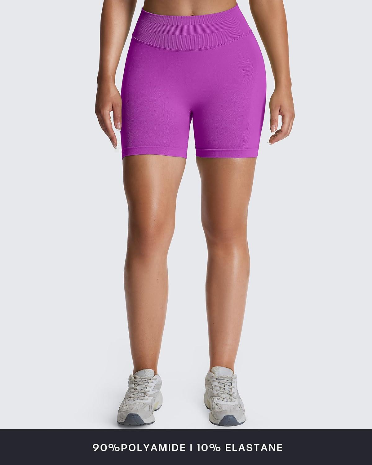 Aoxjox Seamless Biker Shorts for Women Impact Hidden Scrunch Low Waisted Athletic Yoga Short 3.5"/4.5"/5"/6"(Real Purple)
