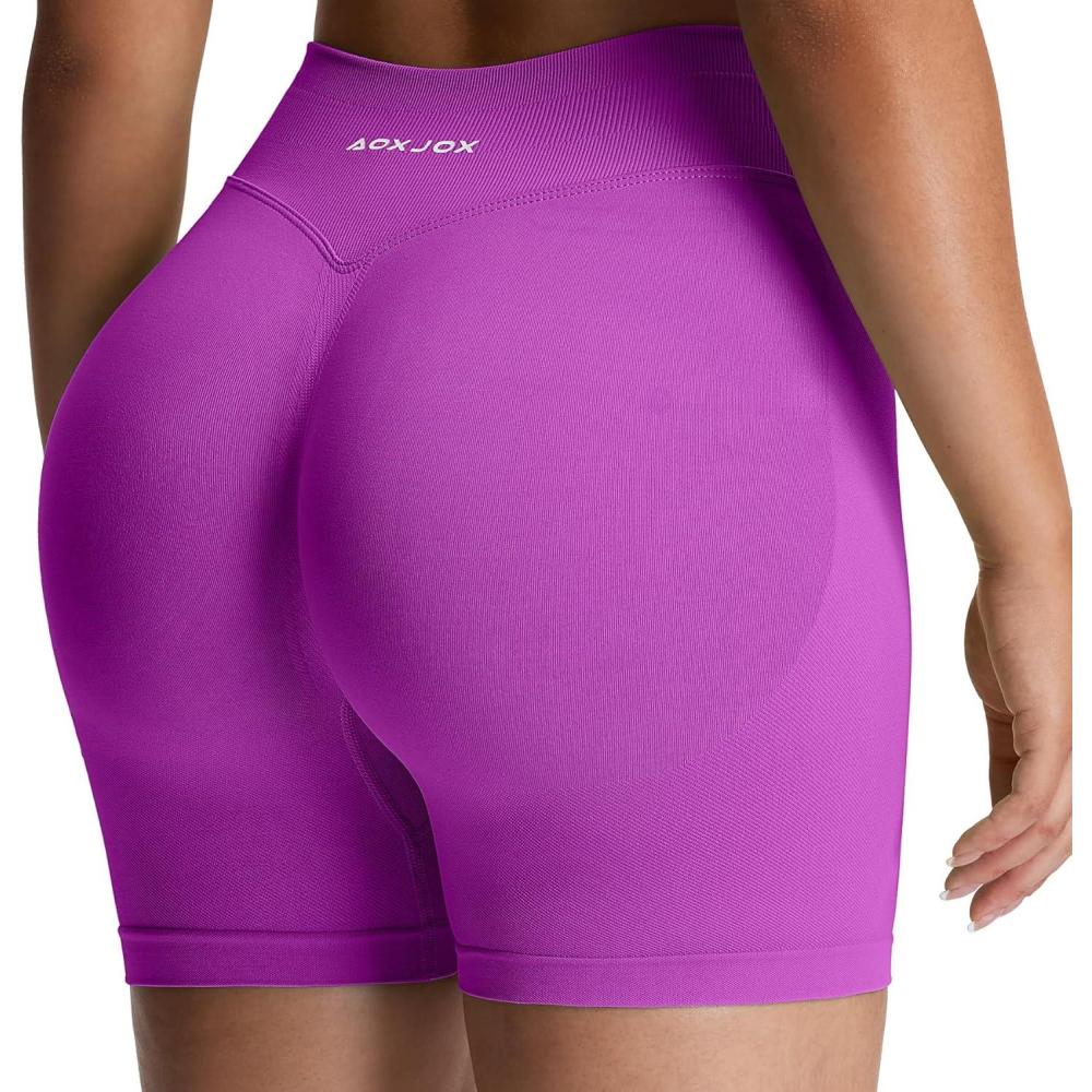 Aoxjox Seamless Biker Shorts for Women Impact Hidden Scrunch Low Waisted Athletic Yoga Short 3.5″/4.5″/5″/6″(Real Purple)