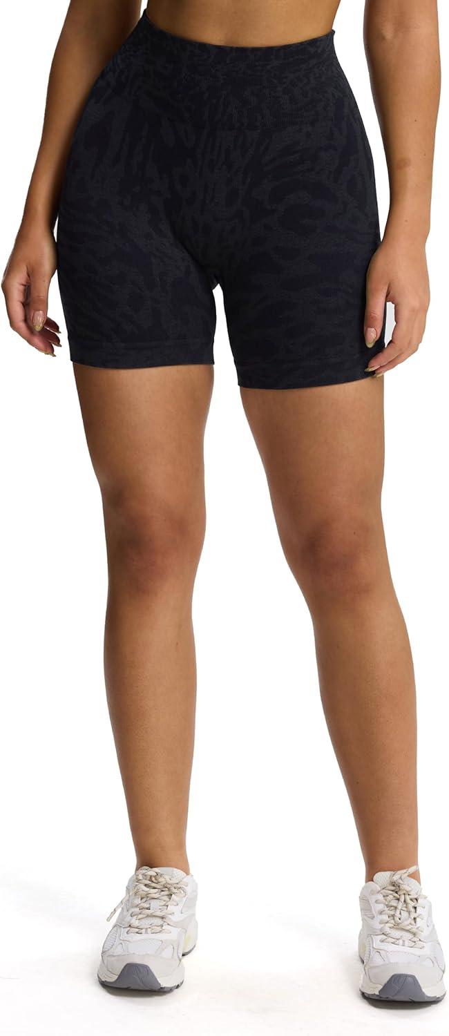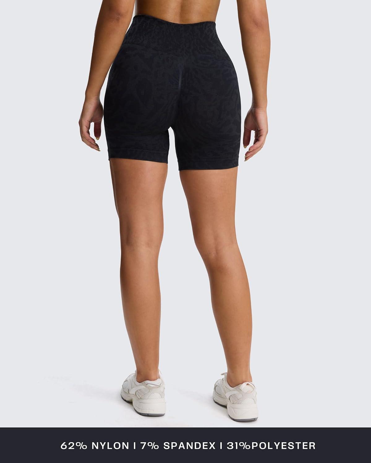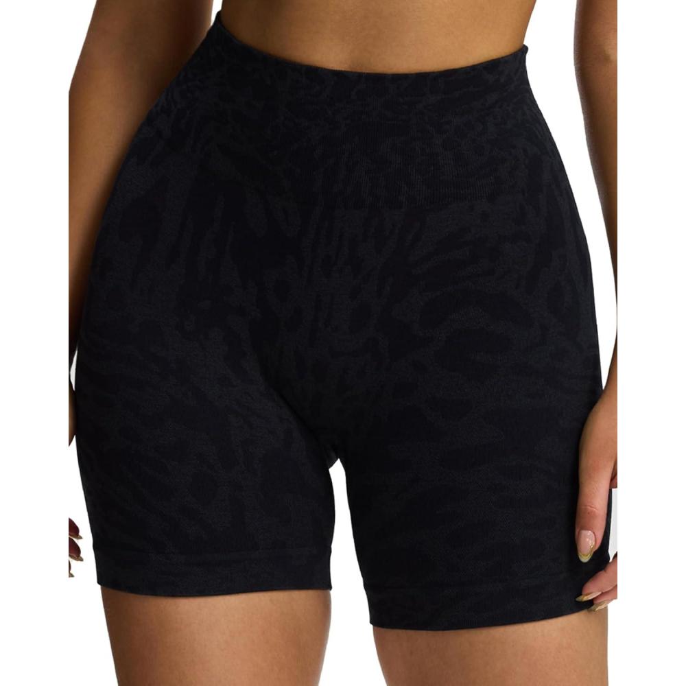 Aoxjox Seamless Camo Scrunch Workout Biker Shorts for Women Tummy Control High Waisted Athletic Gym Running Yoga Short 5"(Black Camo)