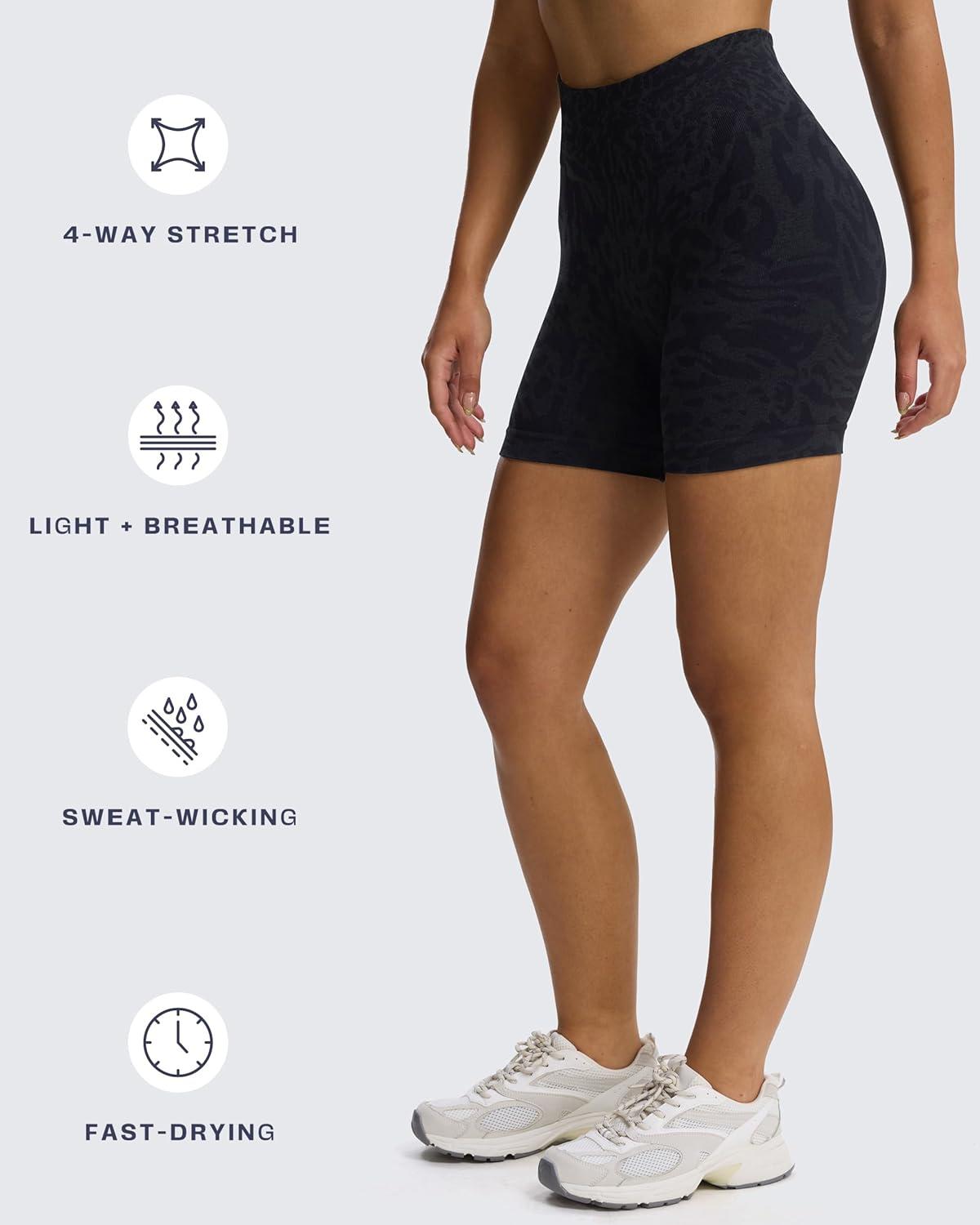 Aoxjox Seamless Camo Scrunch Workout Biker Shorts for Women Tummy Control High Waisted Athletic Gym Running Yoga Short 5″(Black Camo)
