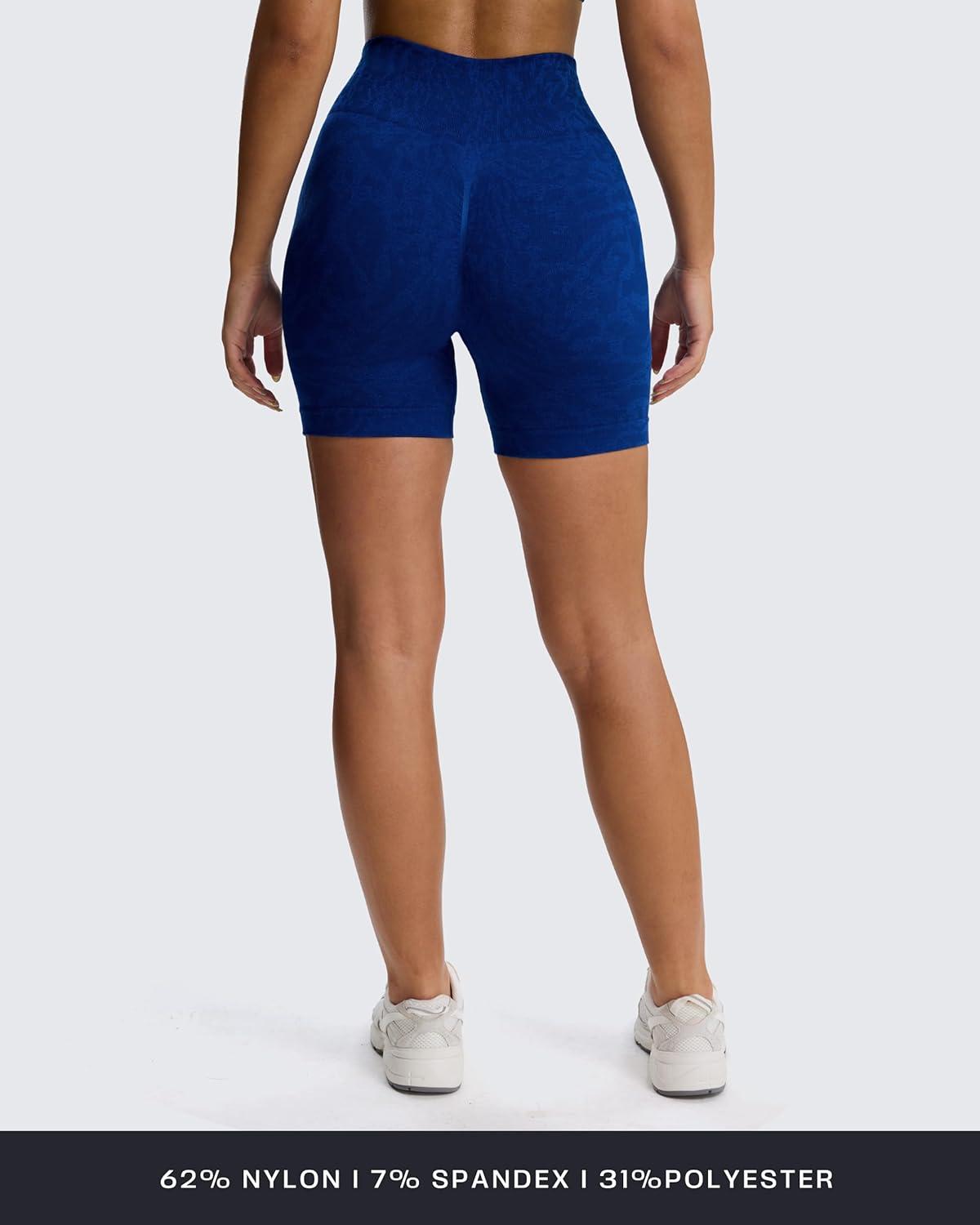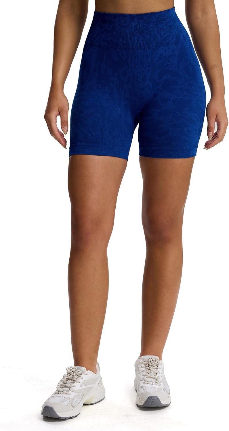 Aoxjox Seamless Camo Scrunch Workout Biker Shorts for Women Tummy Control High Waisted Athletic Gym Running Yoga Short 5"(Navy Camo)