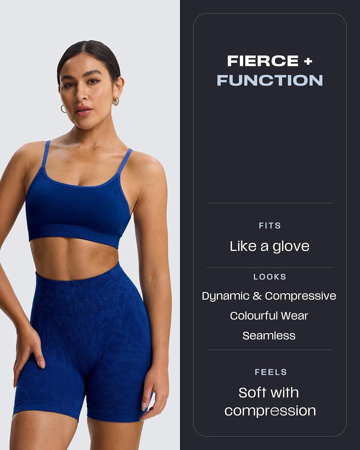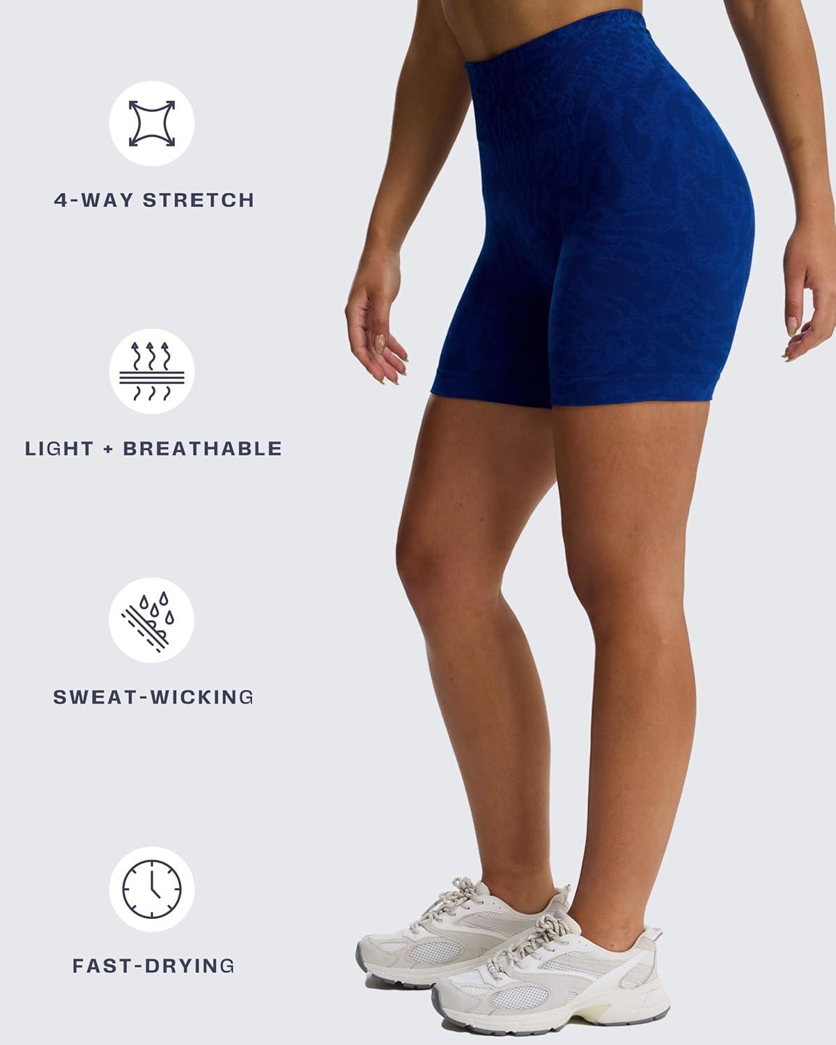 Aoxjox Seamless Camo Scrunch Workout Biker Shorts for Women Tummy Control High Waisted Athletic Gym Running Yoga Short 5″(Navy Camo)