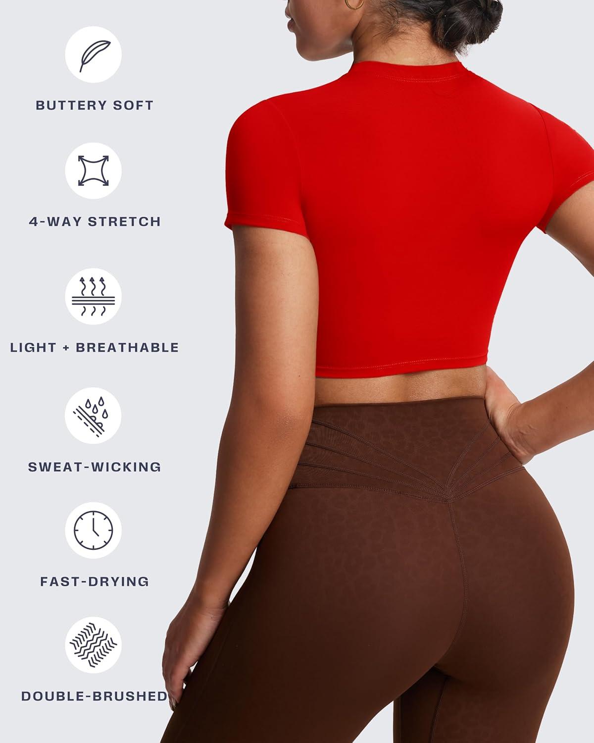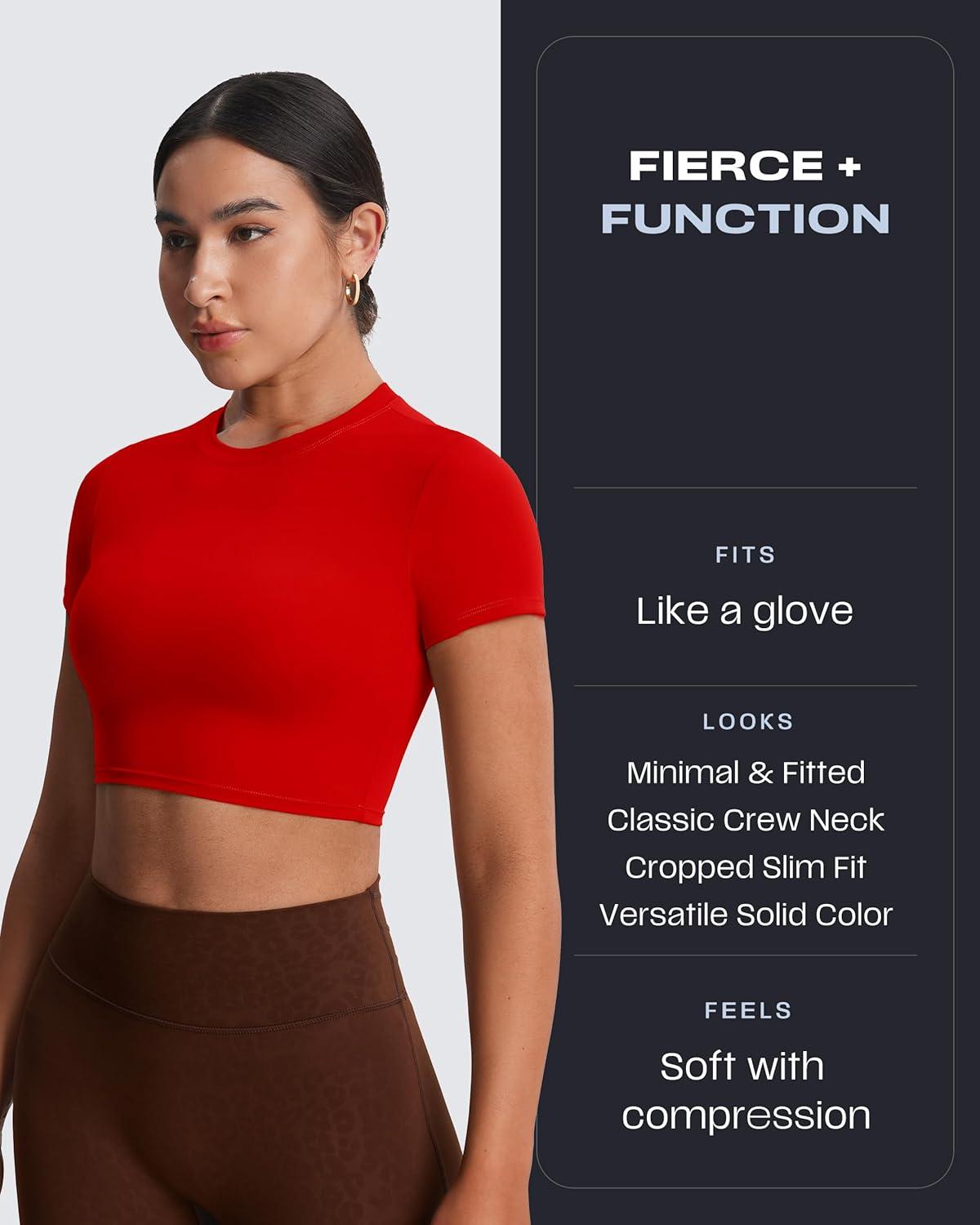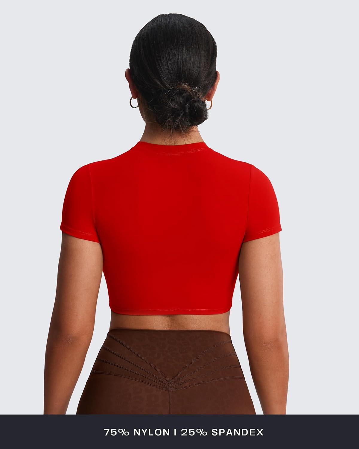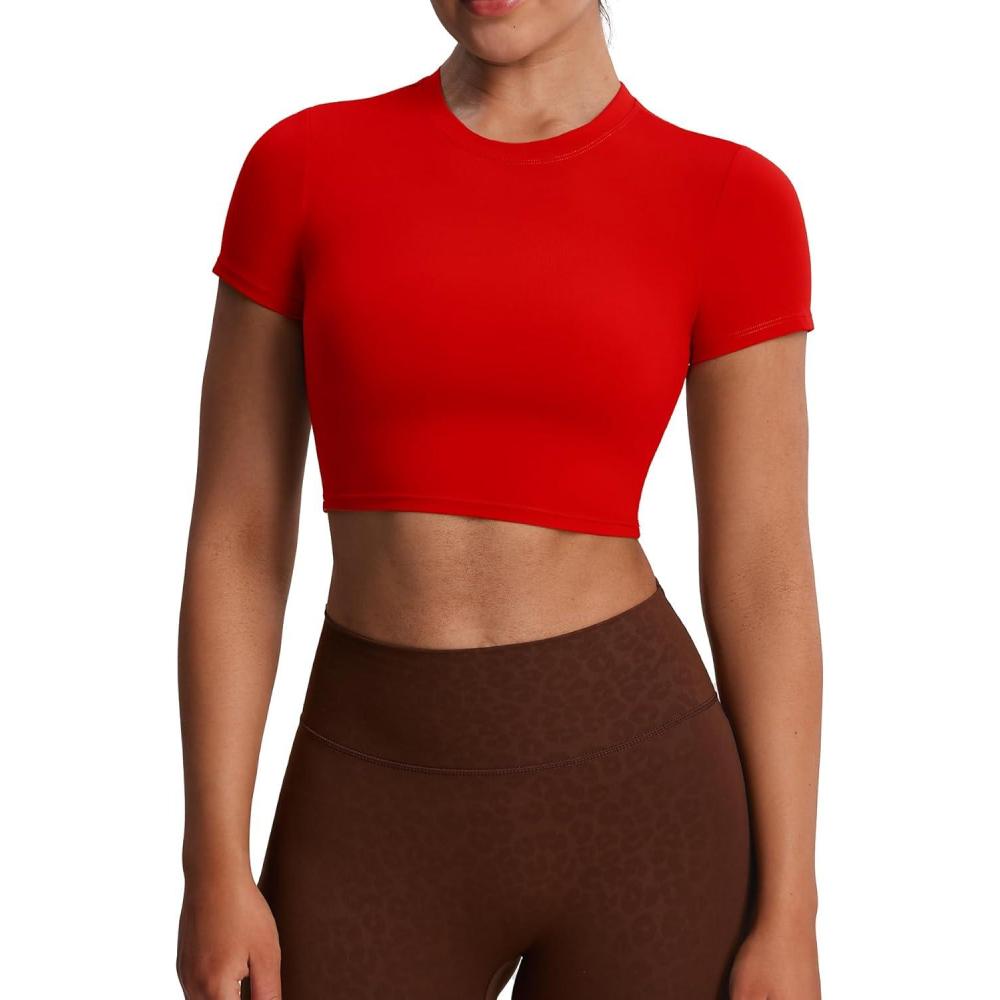 Aoxjox Short Sleeve Crop Tops for Women Classic Longline Baby Tee Workout T Shirt Top(Racing Red)