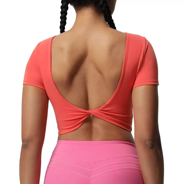 Aoxjox Short Sleeve Crop Tops for Women Emma Backless Twist Back Workout Crop T Shirt TopSpiced Coral
