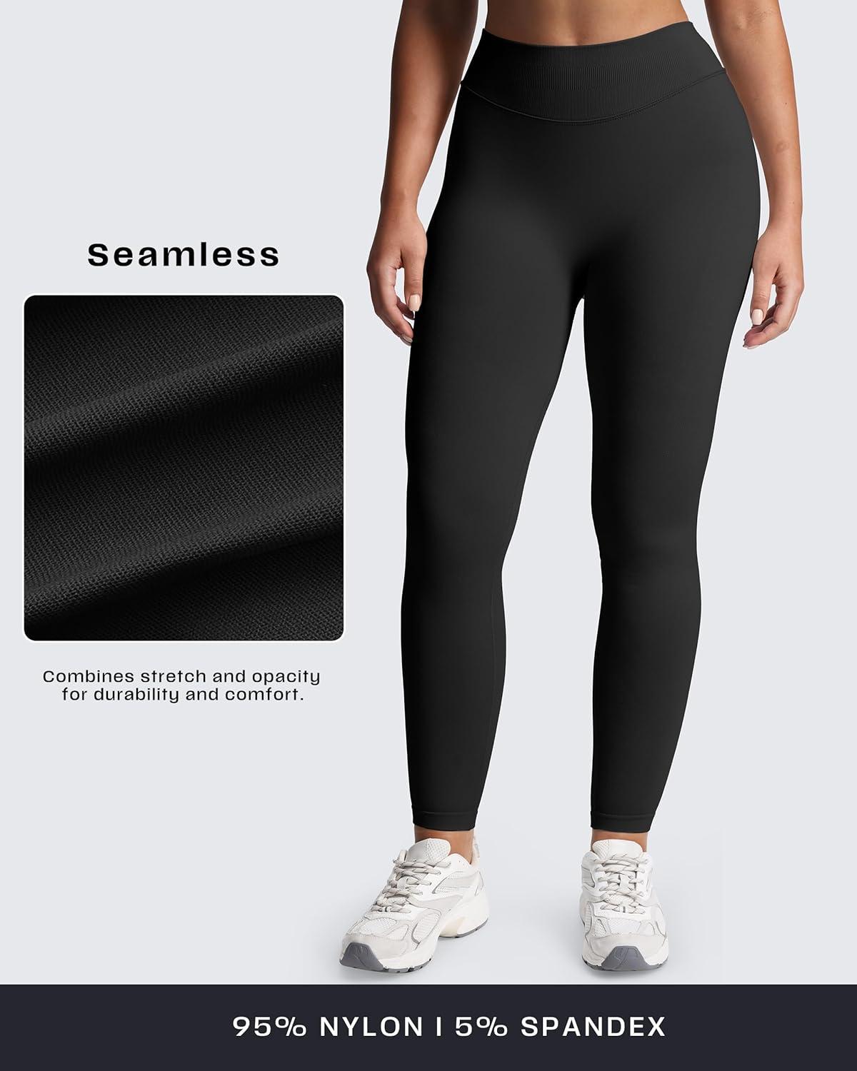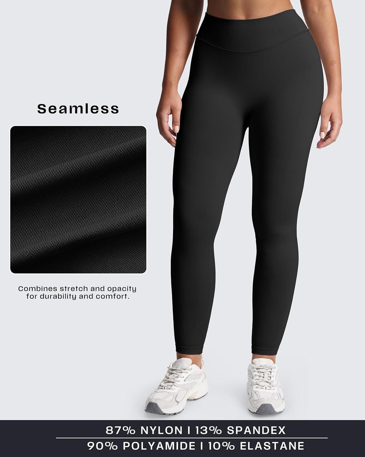 Aoxjox Women’s Impact Seamless Workout Leggings Hidden Scrunch Butt Lifting Low Waist Yoga Pants 24″/26″(Black)