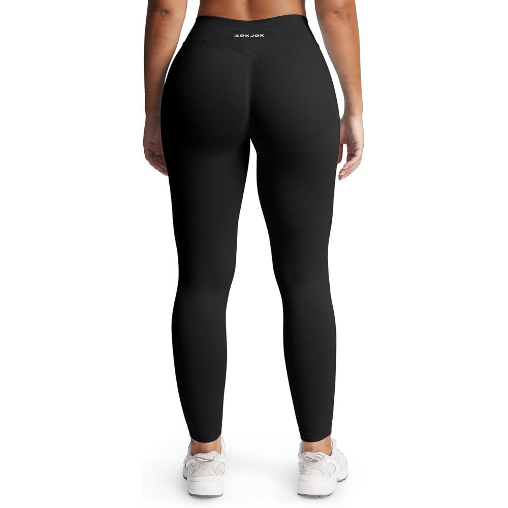 Aoxjox Women's Impact Seamless Workout Leggings Hidden Scrunch Butt Lifting Low Waist Yoga Pants 24"/26"(Black)
