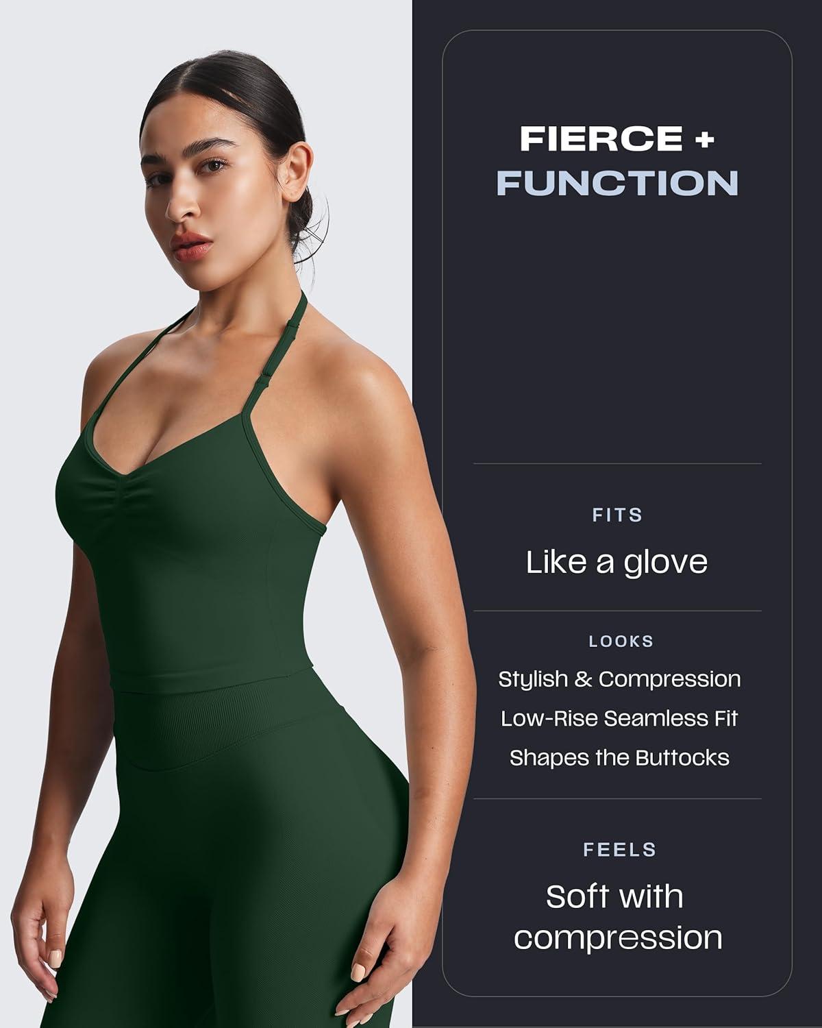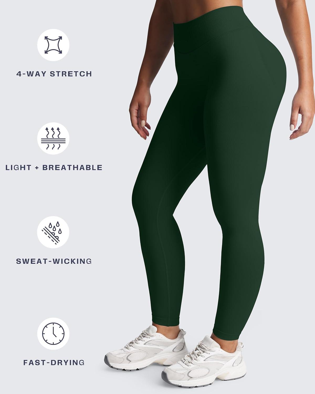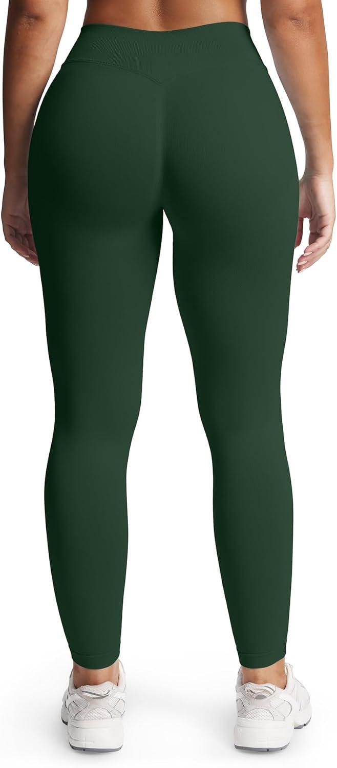 Aoxjox Women's Impact Seamless Workout Leggings Hidden Scrunch Butt Lifting Low Waist Yoga Pants 24"/26"(Dark Green)
