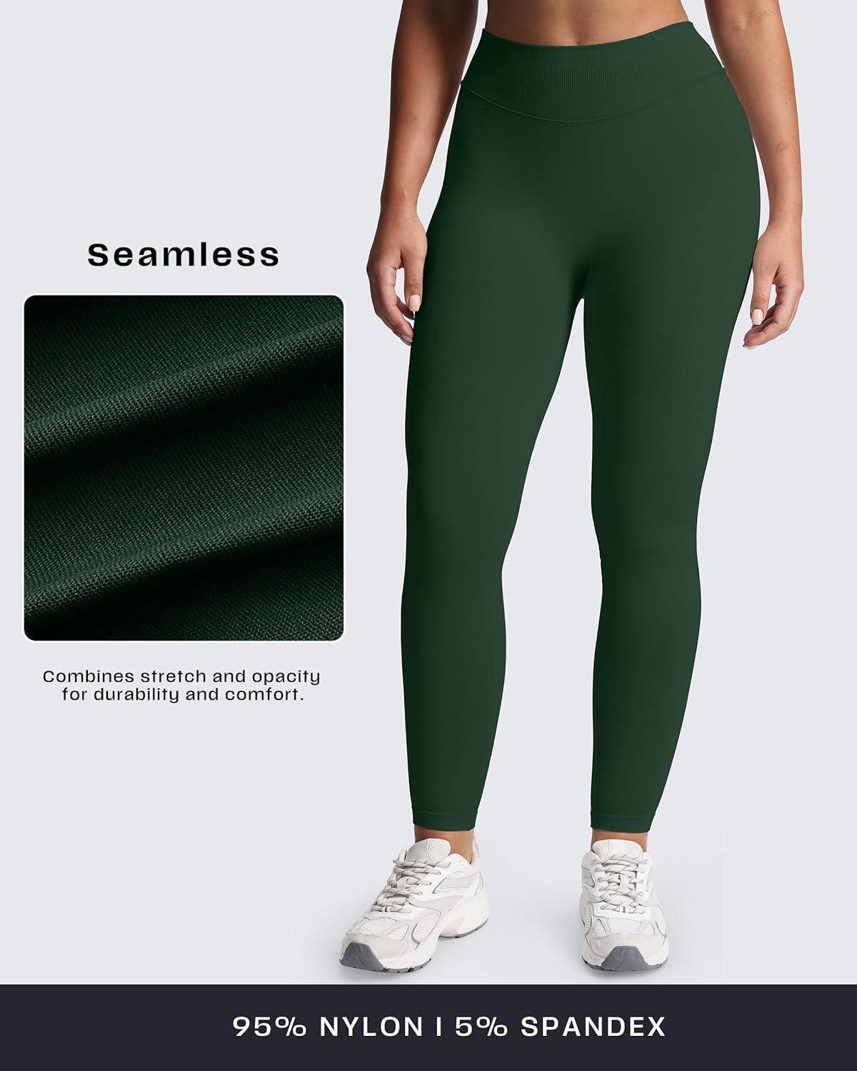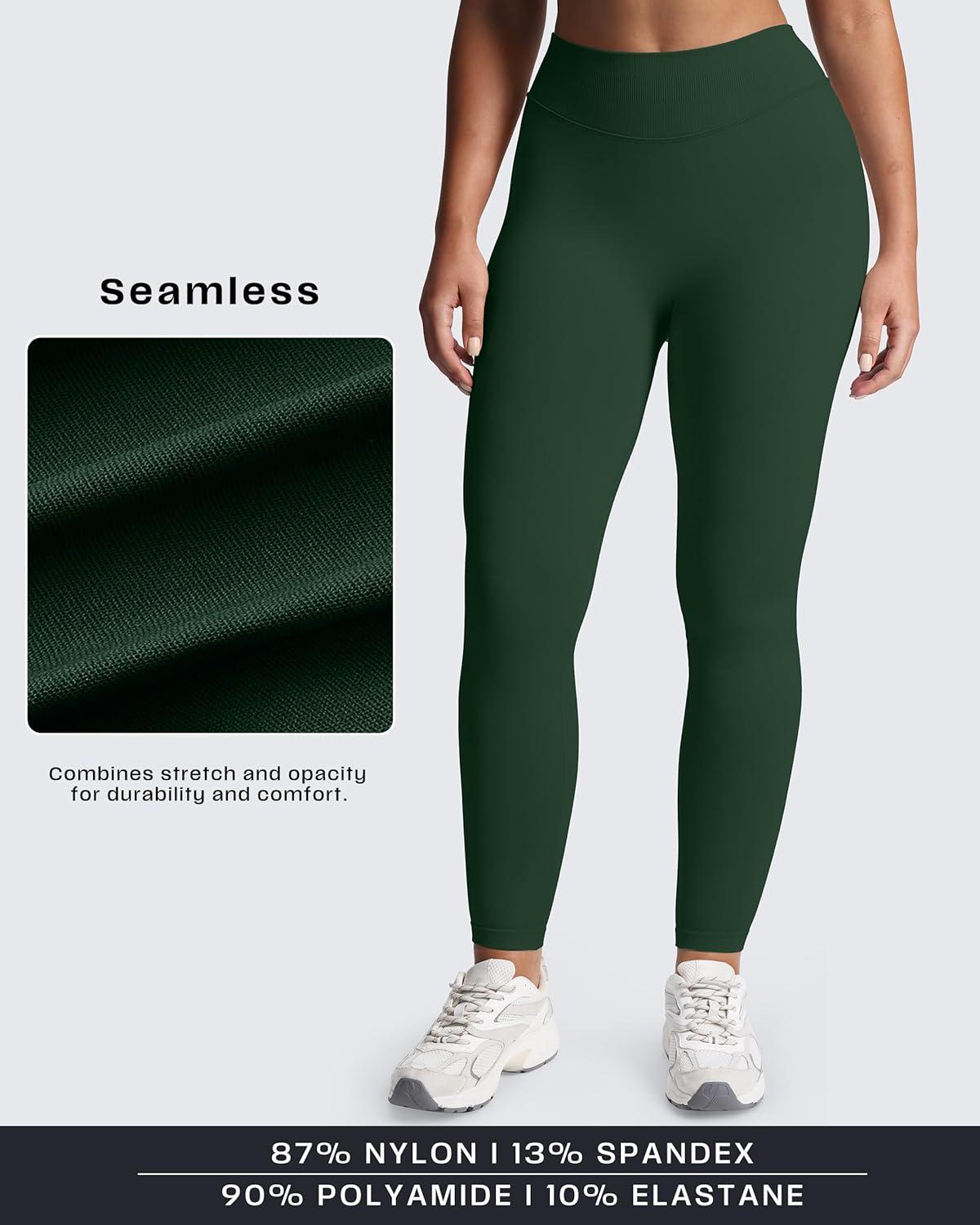 Aoxjox Women’s Impact Seamless Workout Leggings Hidden Scrunch Butt Lifting Low Waist Yoga Pants 24″/26″(Dark Green)