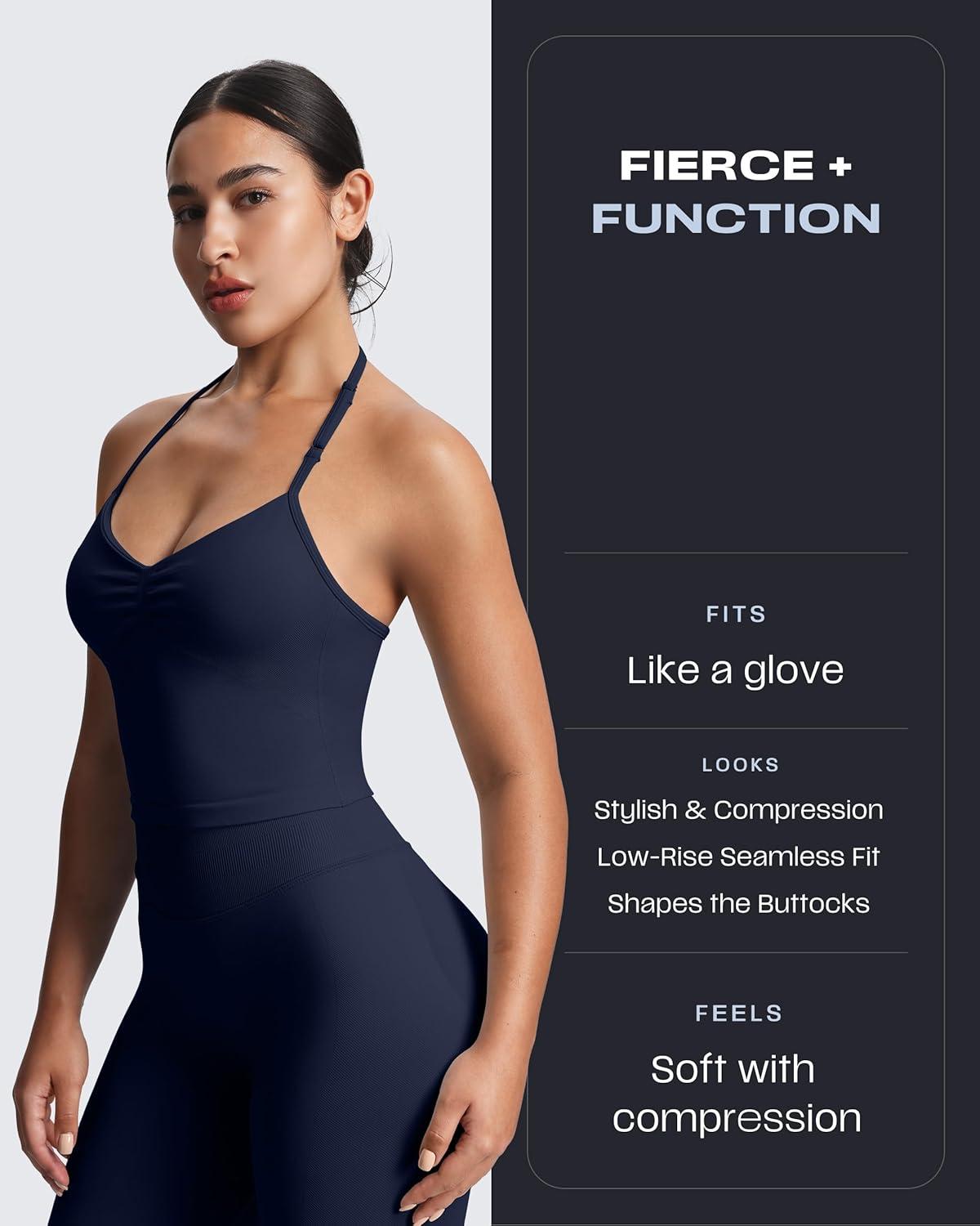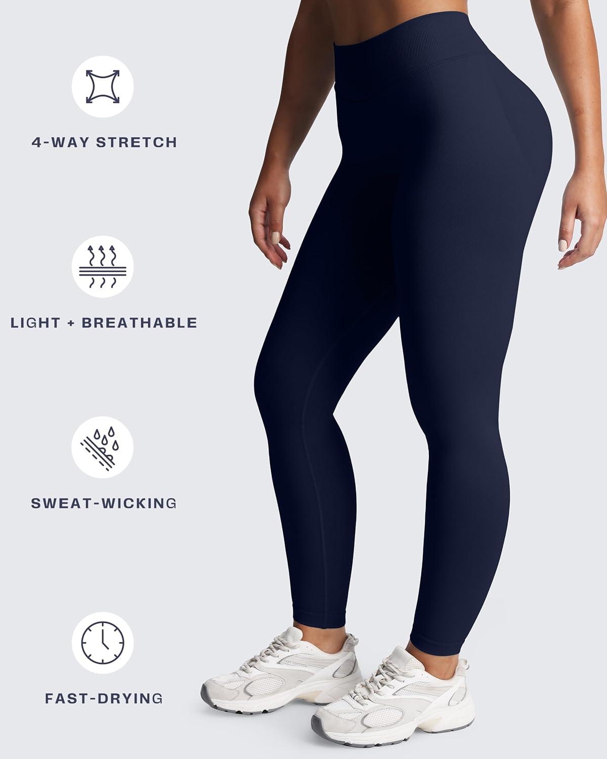 Aoxjox Women’s Impact Seamless Workout Leggings Hidden Scrunch Butt Lifting Low Waist Yoga Pants 24″/26″(Dark Navy)