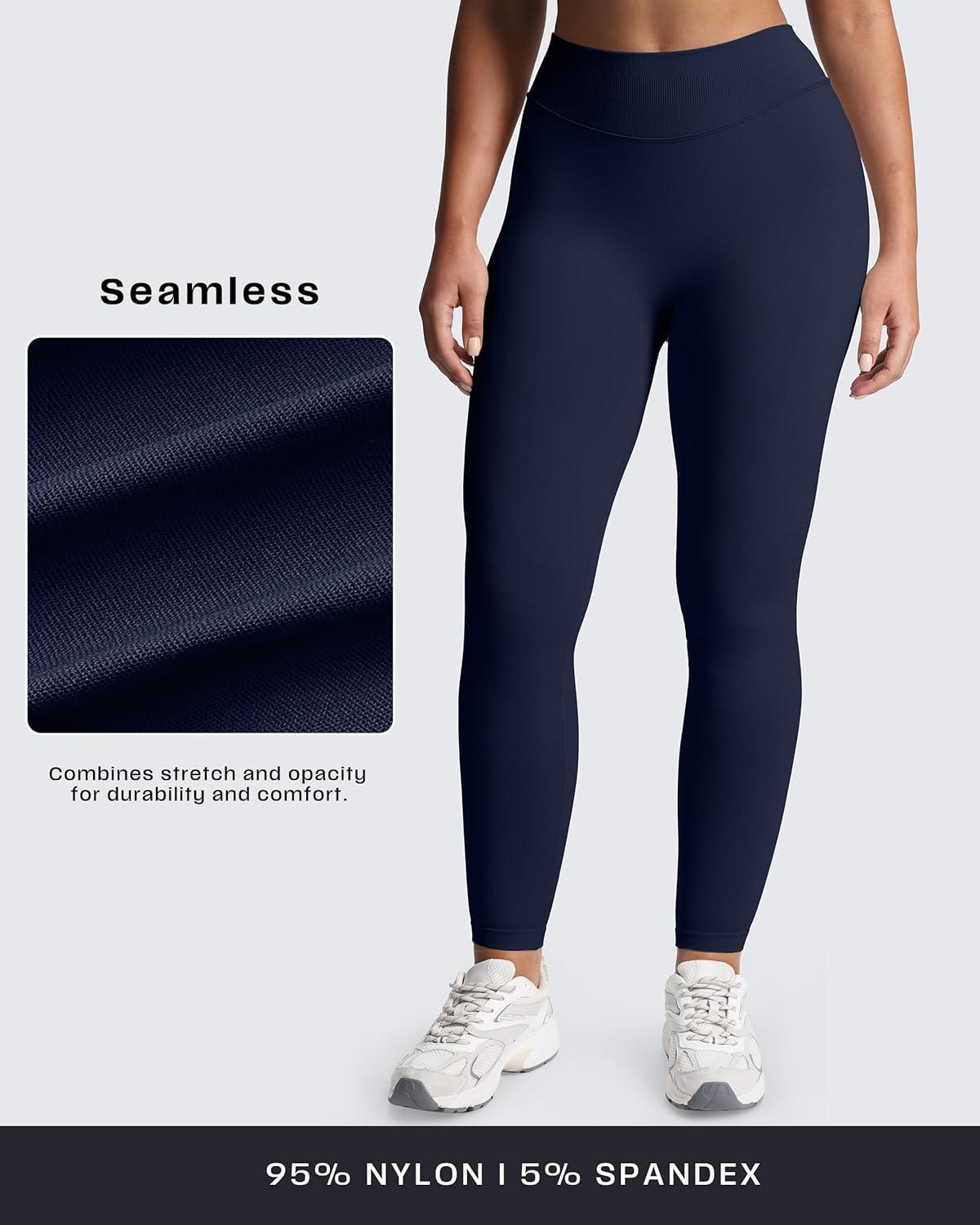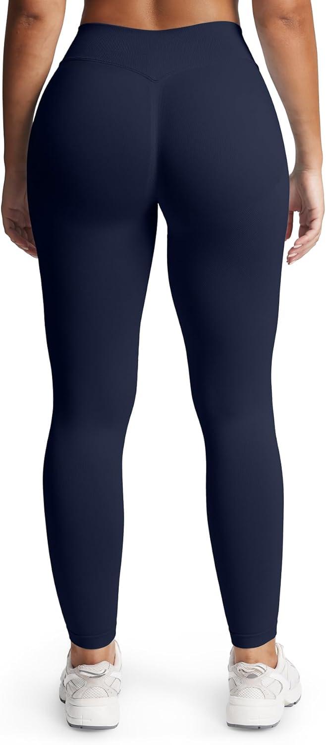 Aoxjox Women's Impact Seamless Workout Leggings Hidden Scrunch Butt Lifting Low Waist Yoga Pants 24"/26"(Dark Navy)