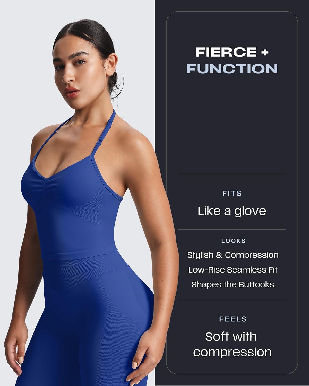 Aoxjox Women’s Impact Seamless Workout Leggings Hidden Scrunch Butt Lifting Low Waist Yoga Pants 24″/26″(Deep Sea)