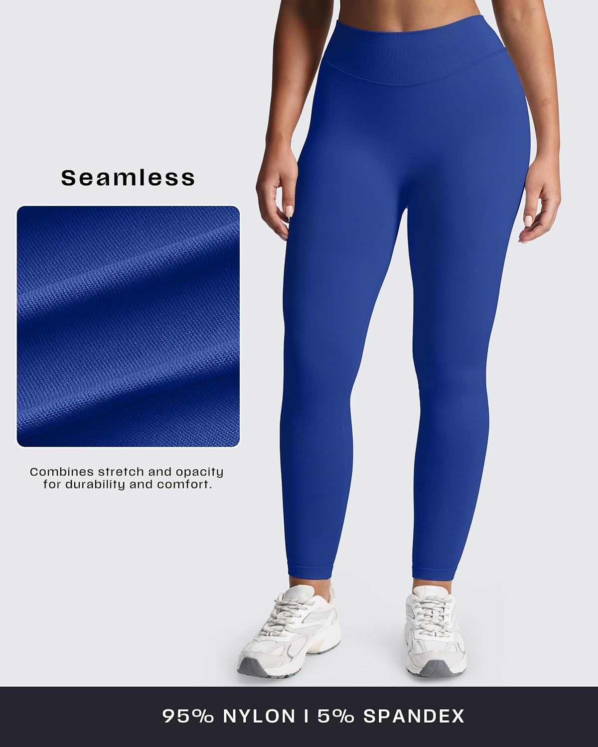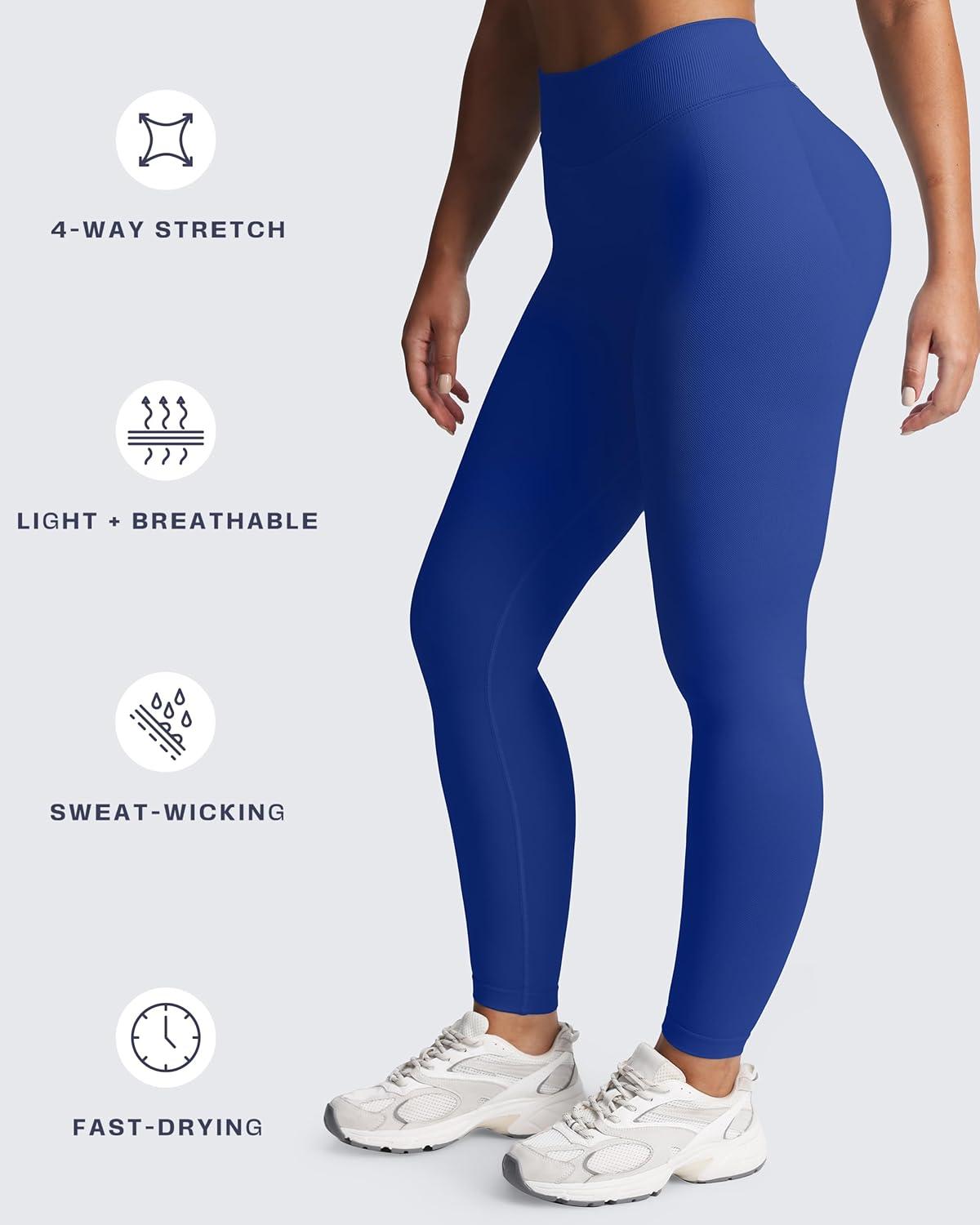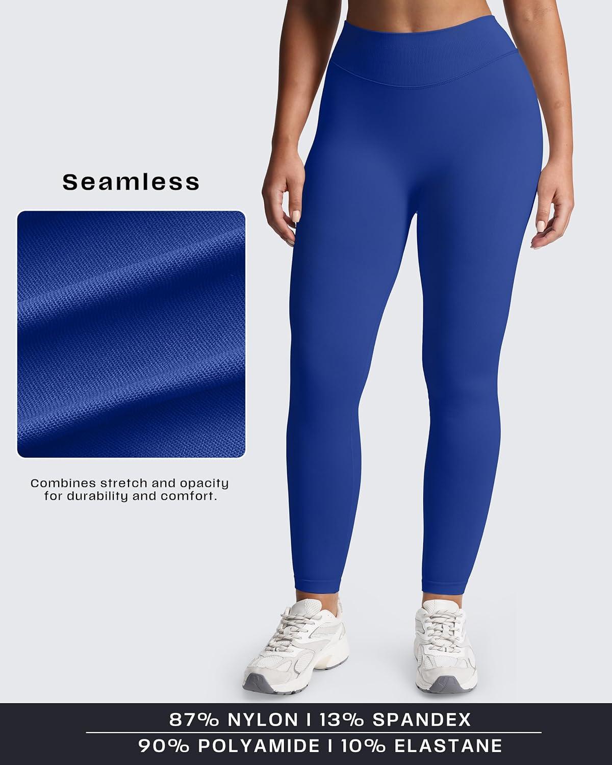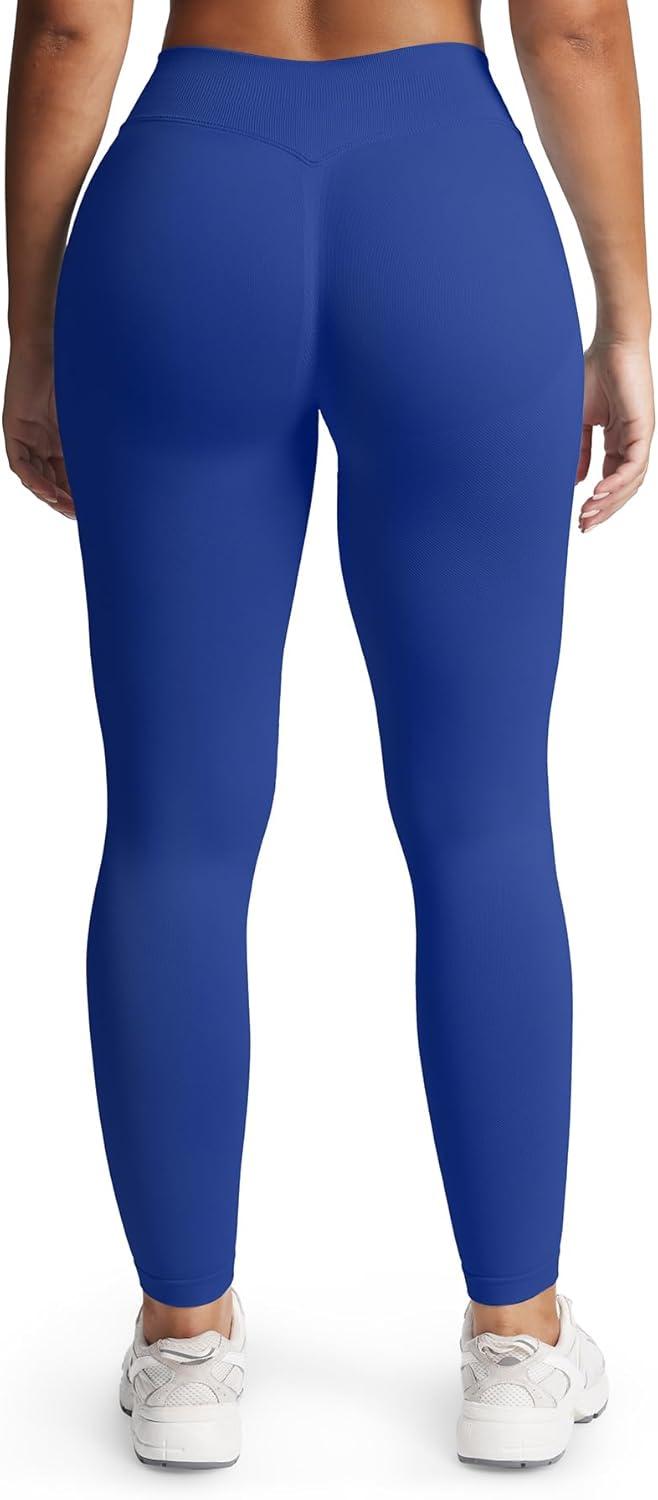 Aoxjox Women's Impact Seamless Workout Leggings Hidden Scrunch Butt Lifting Low Waist Yoga Pants 24"/26"(Deep Sea)
