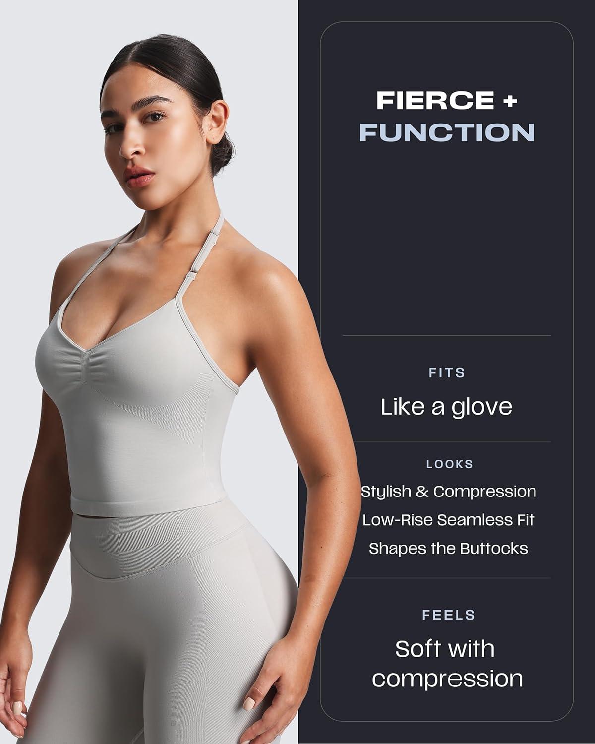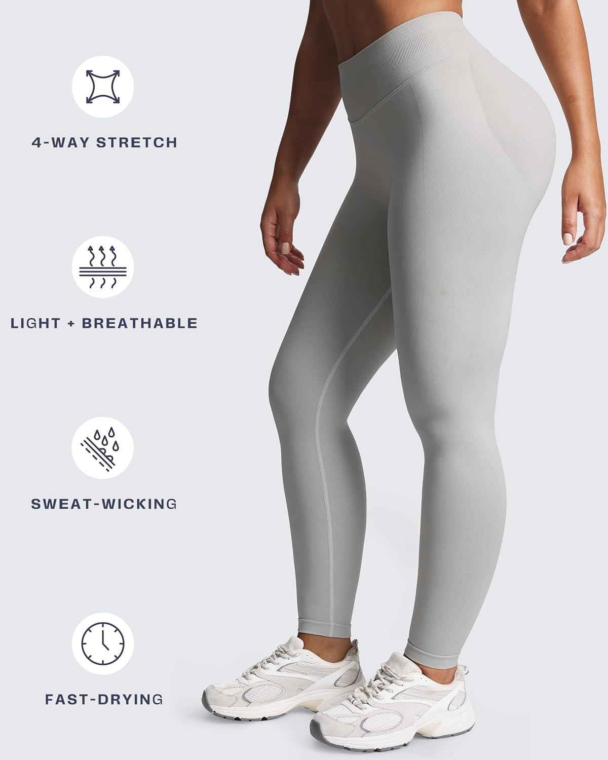 Aoxjox Women’s Impact Seamless Workout Leggings Hidden Scrunch Butt Lifting Low Waist Yoga Pants 24″/26″(Feather Beige)
