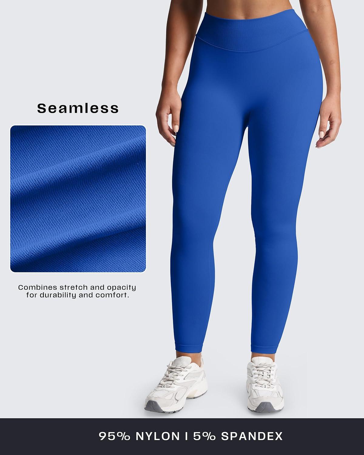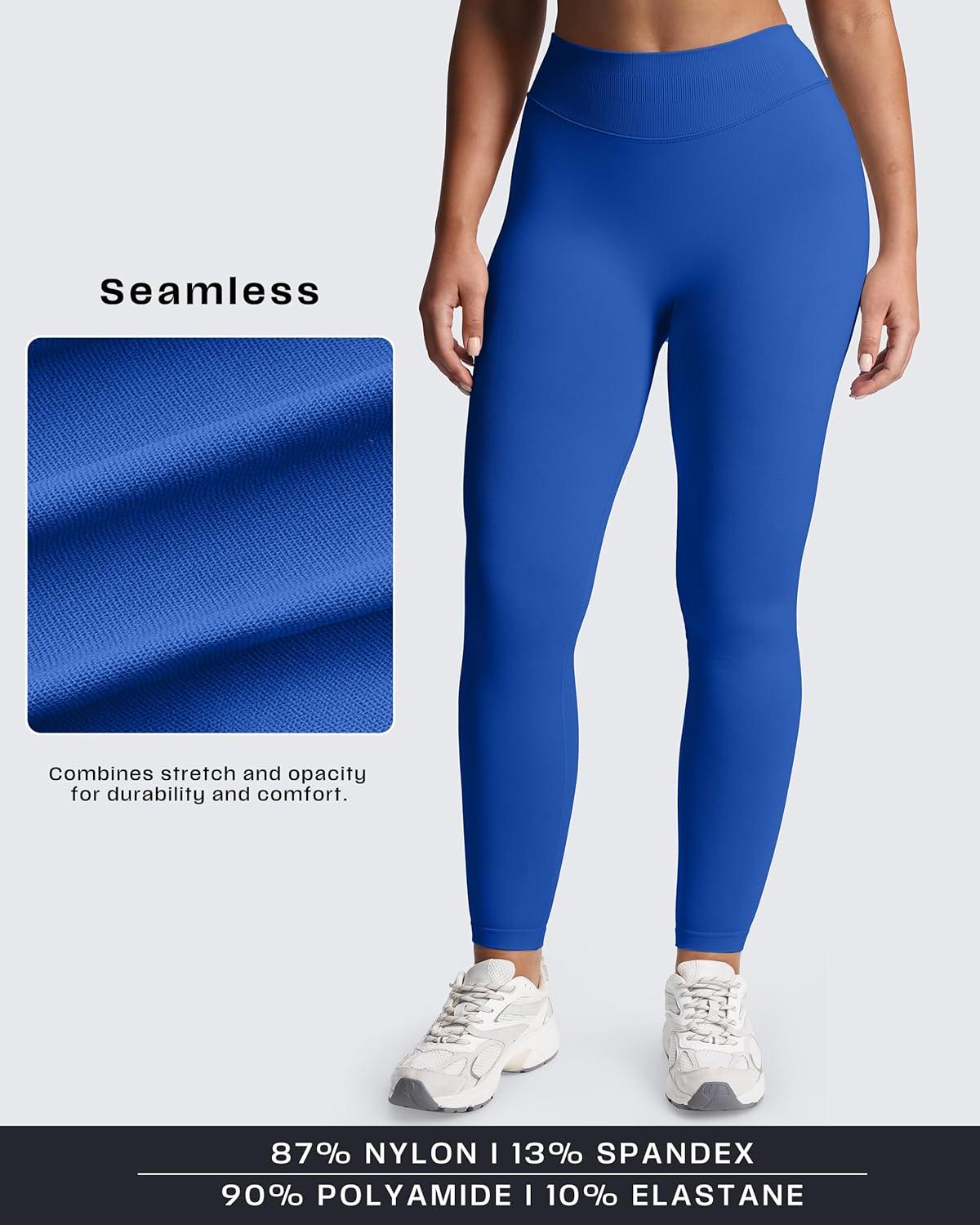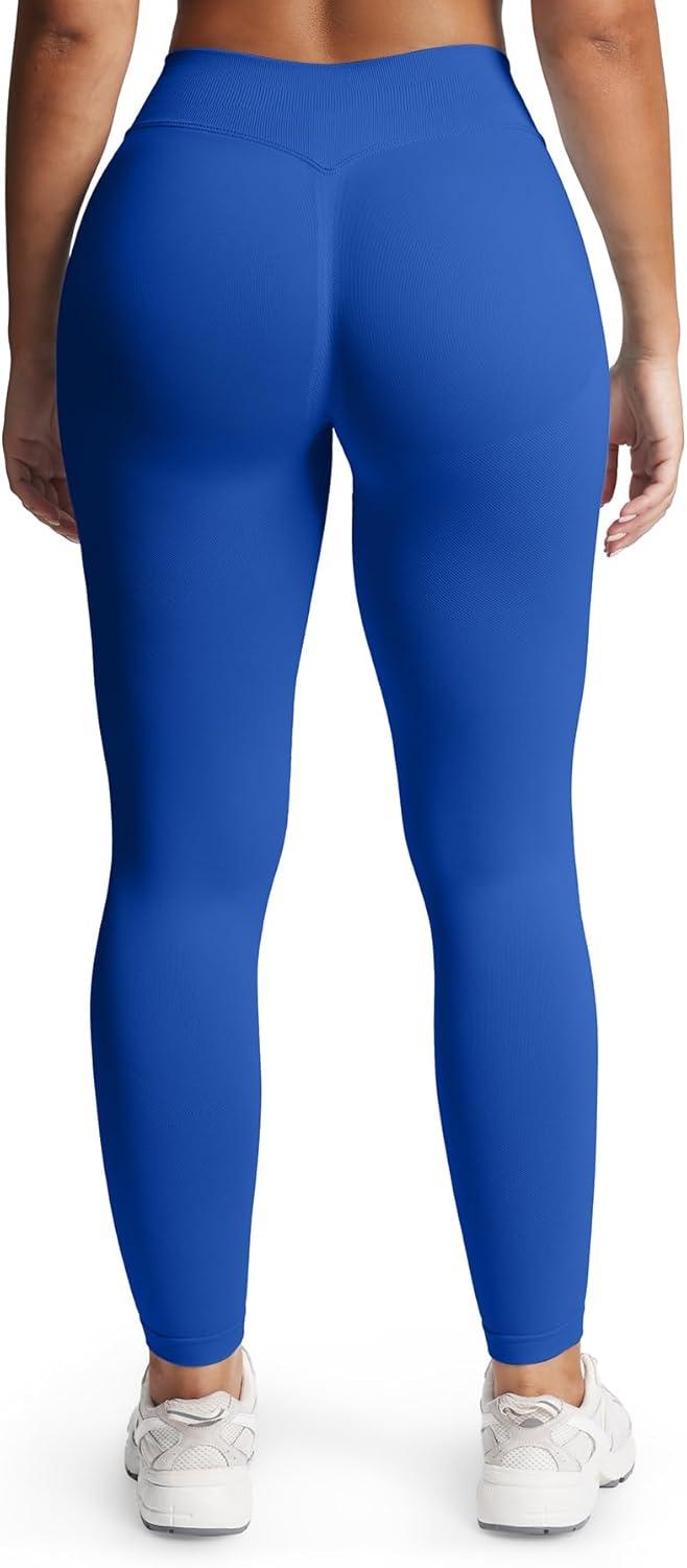 Aoxjox Women's Impact Seamless Workout Leggings Hidden Scrunch Butt Lifting Low Waist Yoga Pants 24"/26"(Galaxy Blue)