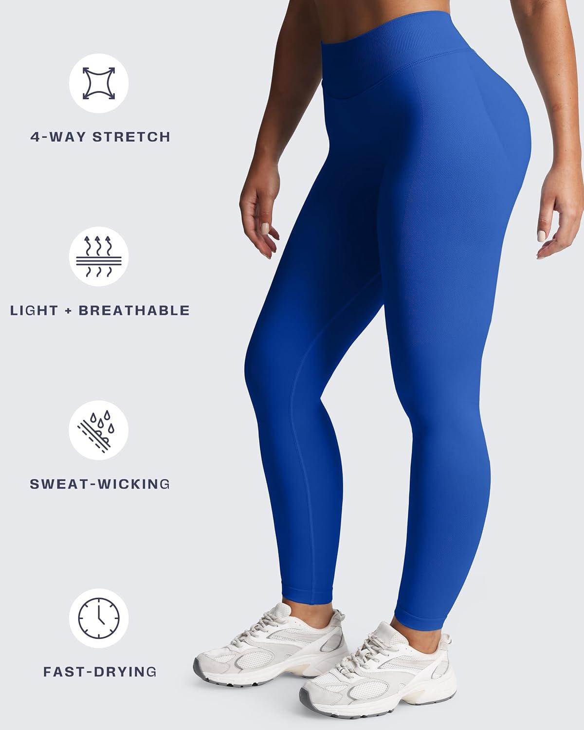Aoxjox Women’s Impact Seamless Workout Leggings Hidden Scrunch Butt Lifting Low Waist Yoga Pants 24″/26″(Galaxy Blue)