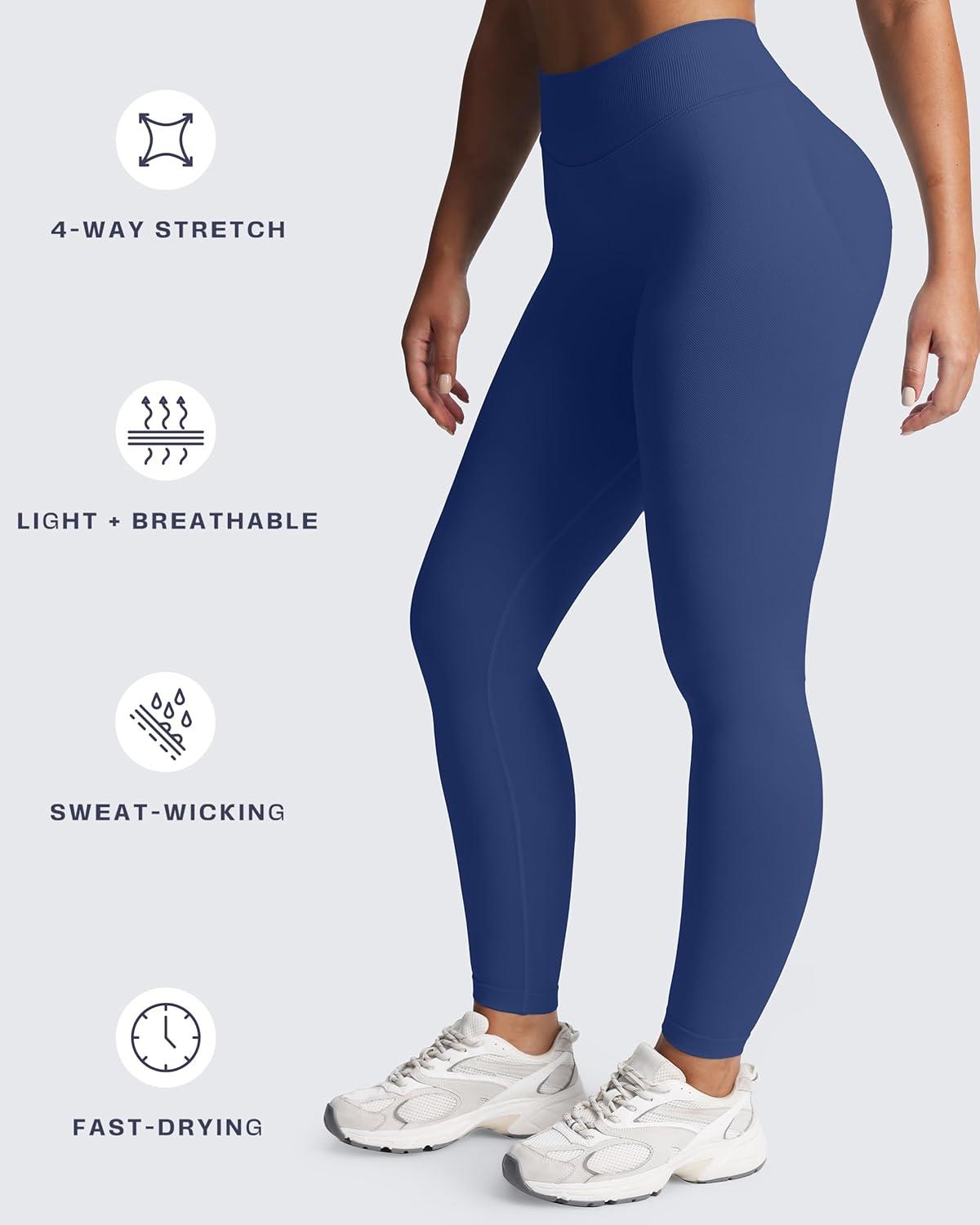Aoxjox Women's Impact Seamless Workout Leggings Hidden Scrunch Butt Lifting Low Waist Yoga Pants 24"/26"(Navy)