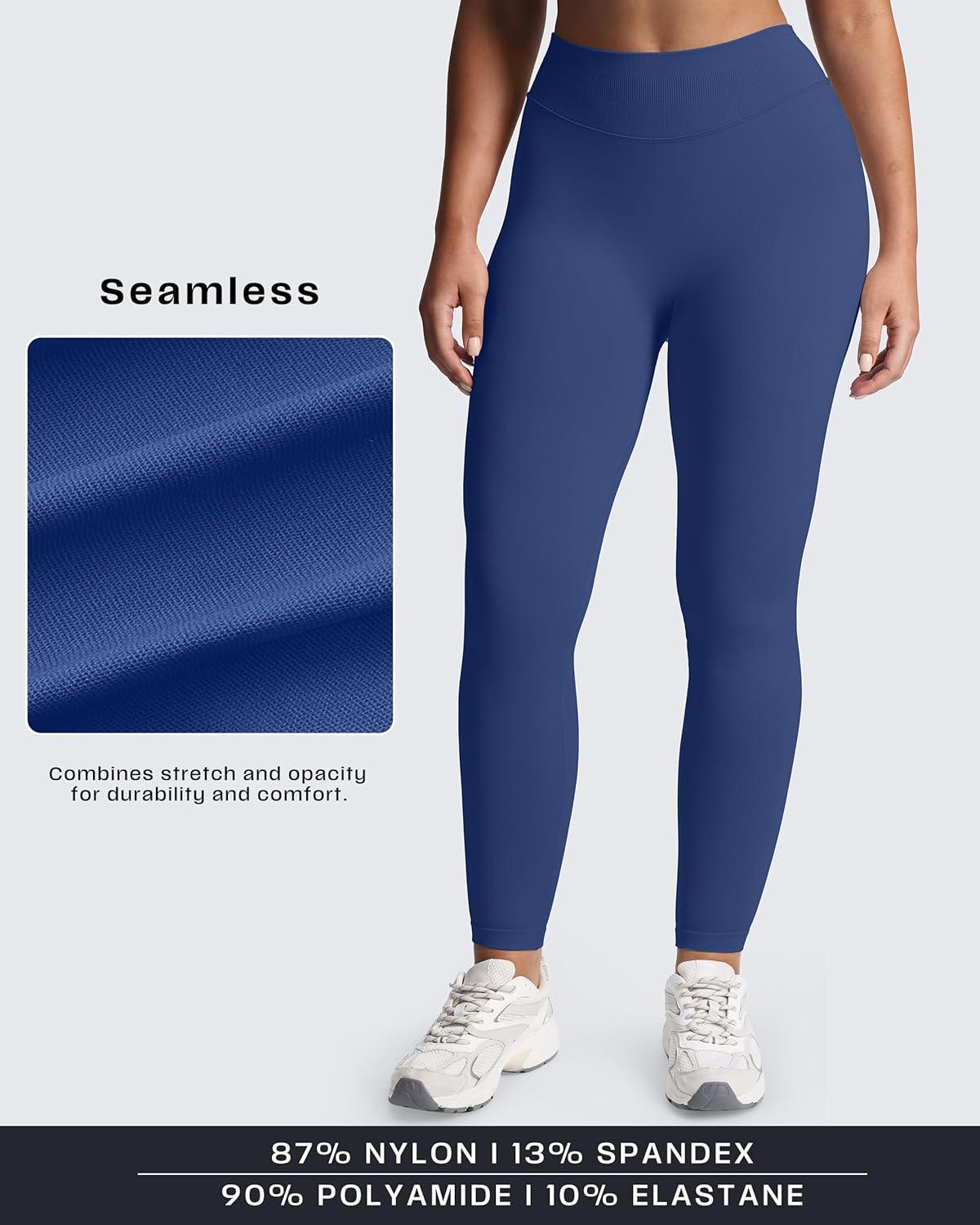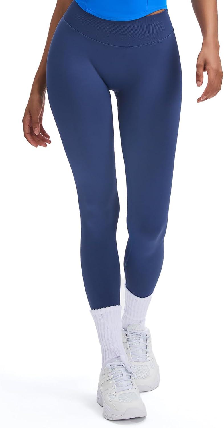 Aoxjox Women’s Impact Seamless Workout Leggings Hidden Scrunch Butt Lifting Low Waist Yoga Pants 24″/26″(Navy)