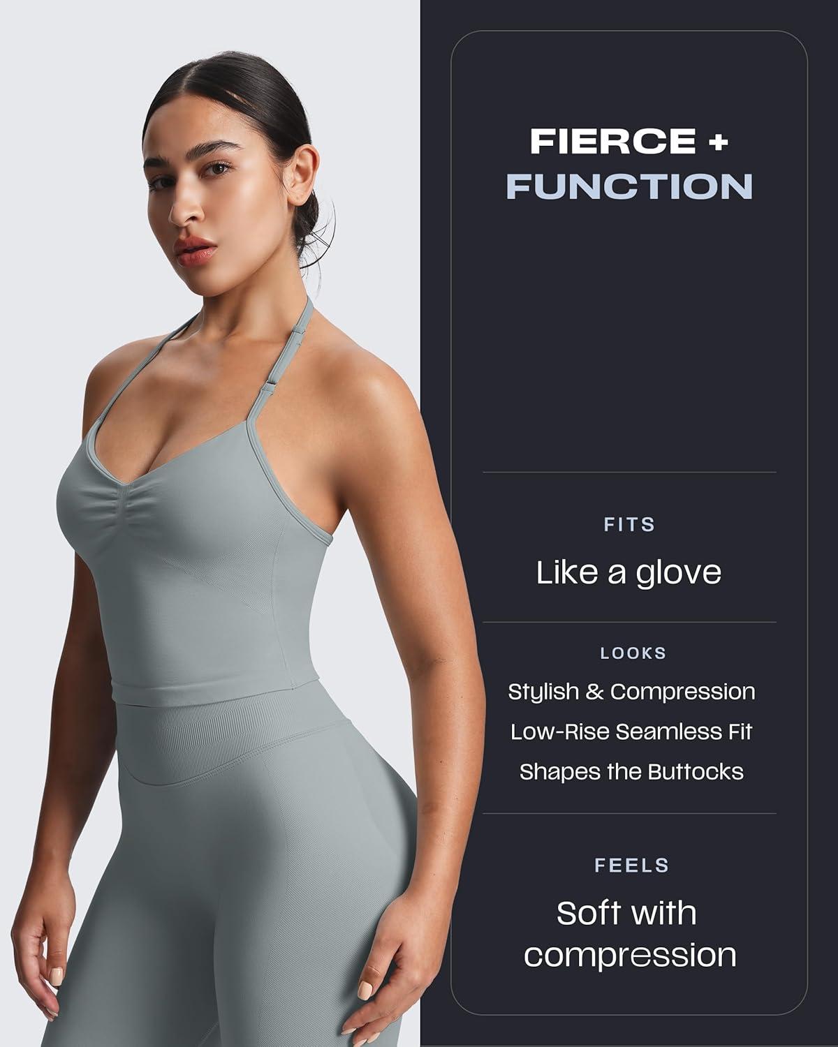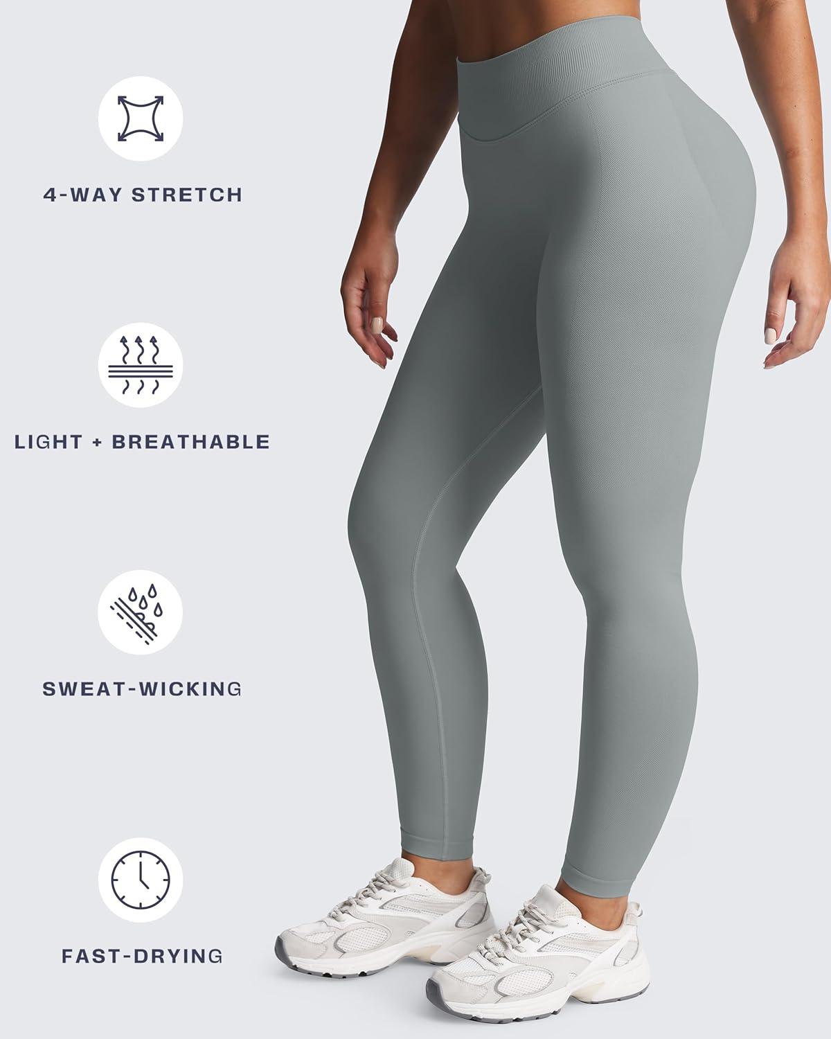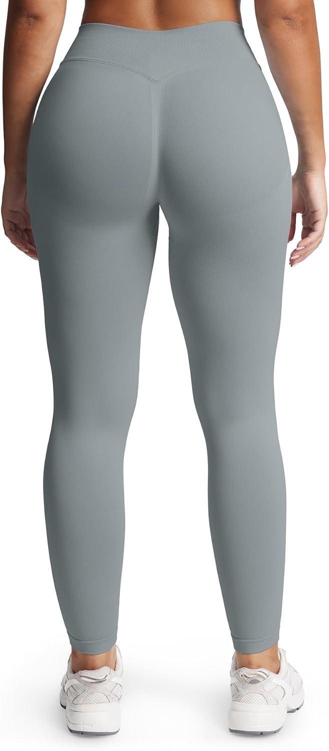 Aoxjox Women’s Impact Seamless Workout Leggings Hidden Scrunch Butt Lifting Low Waist Yoga Pants 24″/26″(Quiet Grey)