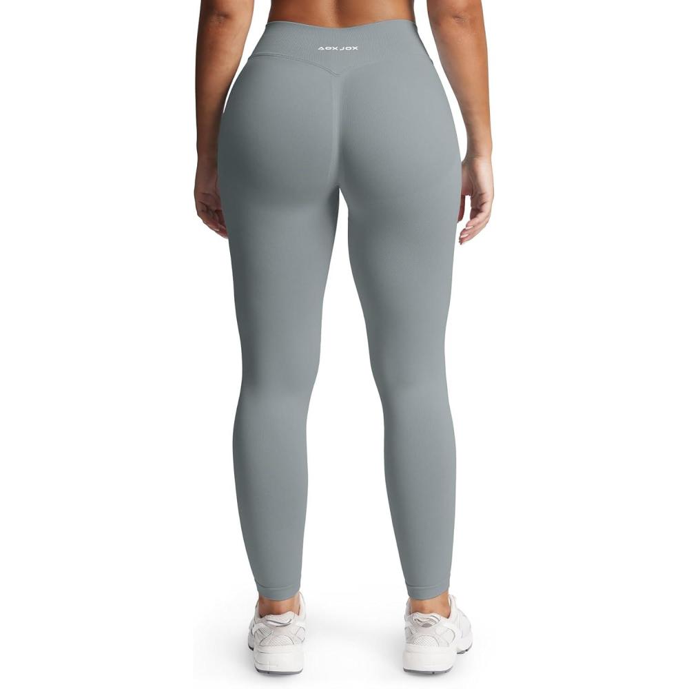 Aoxjox Women's Impact Seamless Workout Leggings Hidden Scrunch Butt Lifting Low Waist Yoga Pants 24"/26"(Quiet Grey)