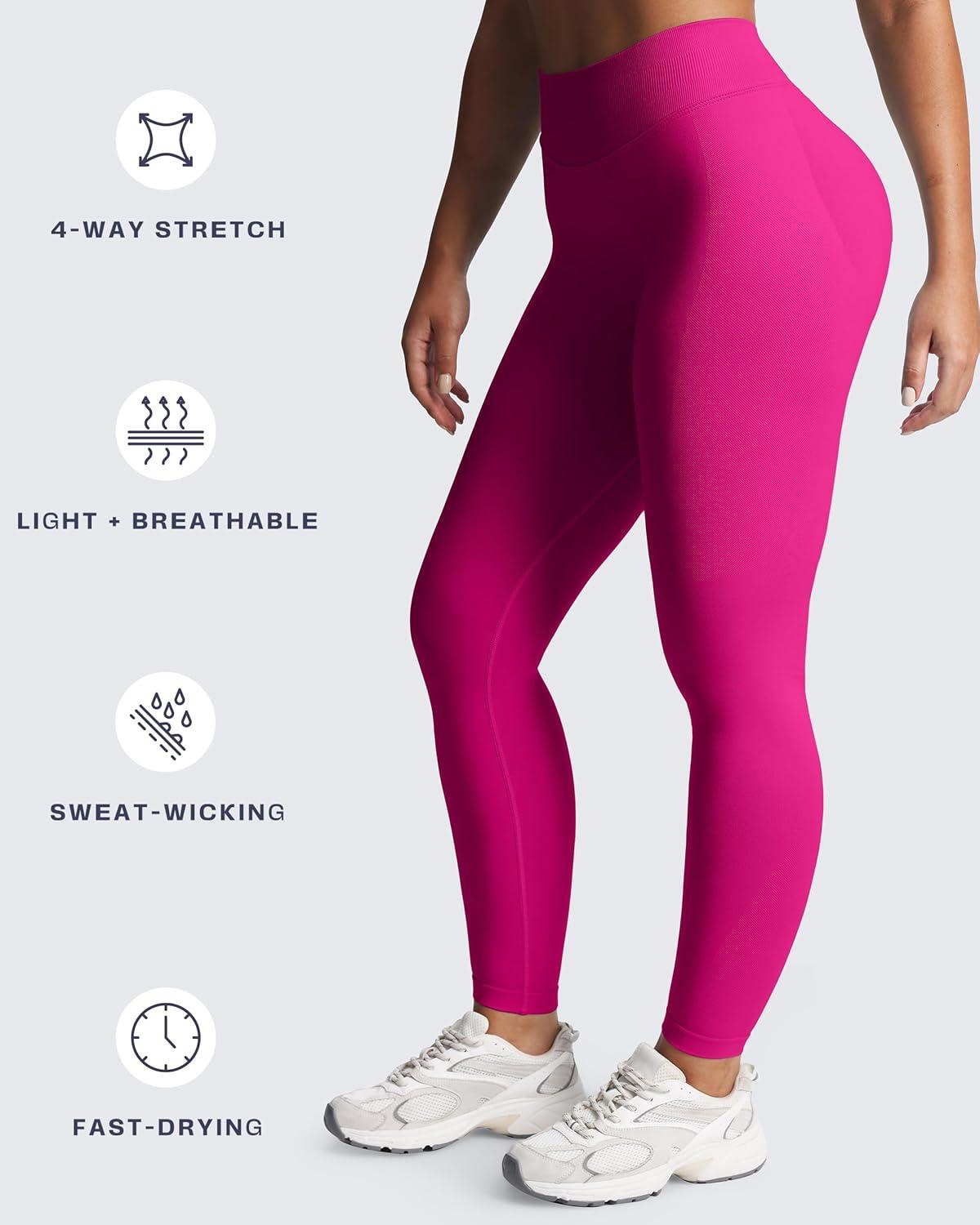 Aoxjox Women’s Impact Seamless Workout Leggings Hidden Scrunch Butt Lifting Low Waist Yoga Pants 24″/26″(Vibrant Violet)