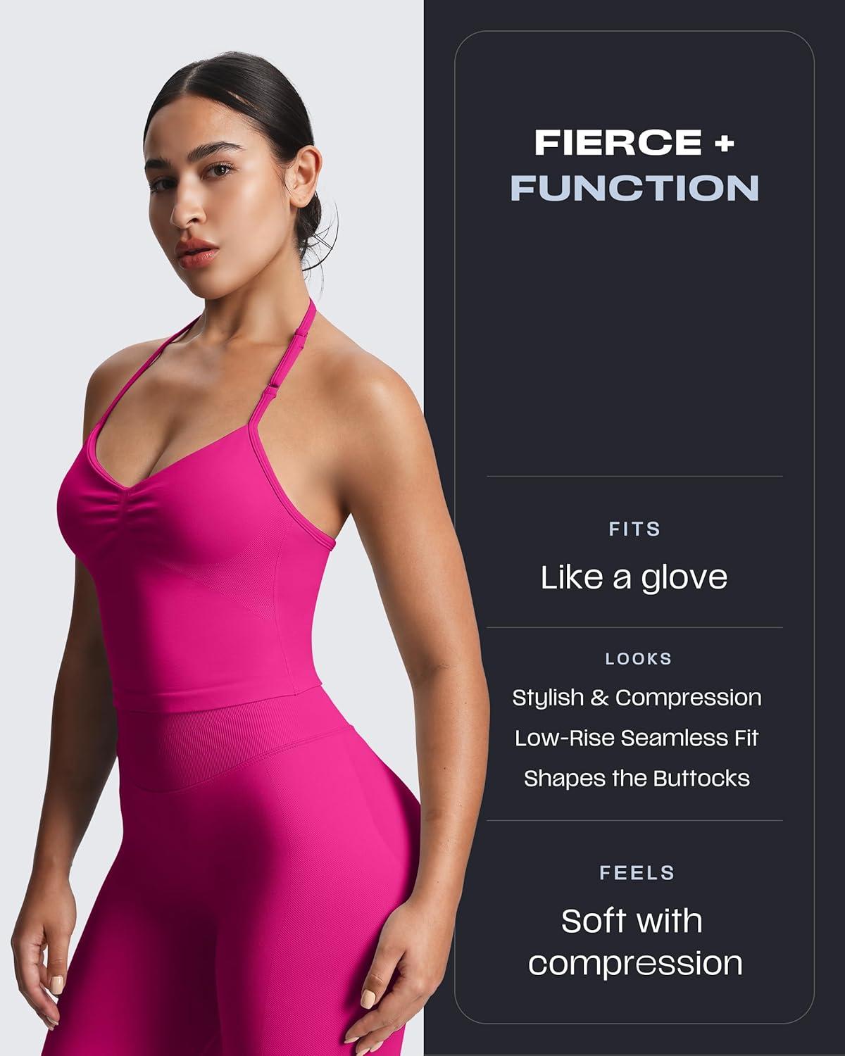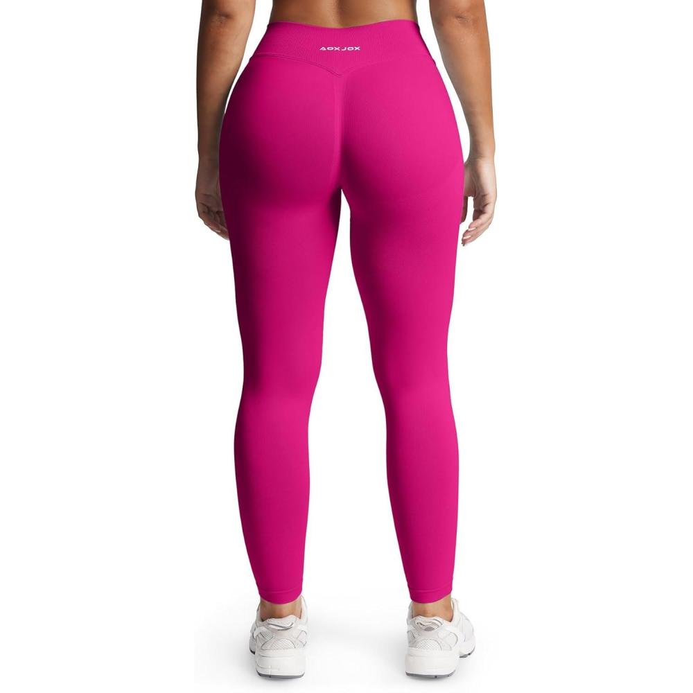 Aoxjox Women’s Impact Seamless Workout Leggings Hidden Scrunch Butt Lifting Low Waist Yoga Pants 24″/26″(Rose Red)