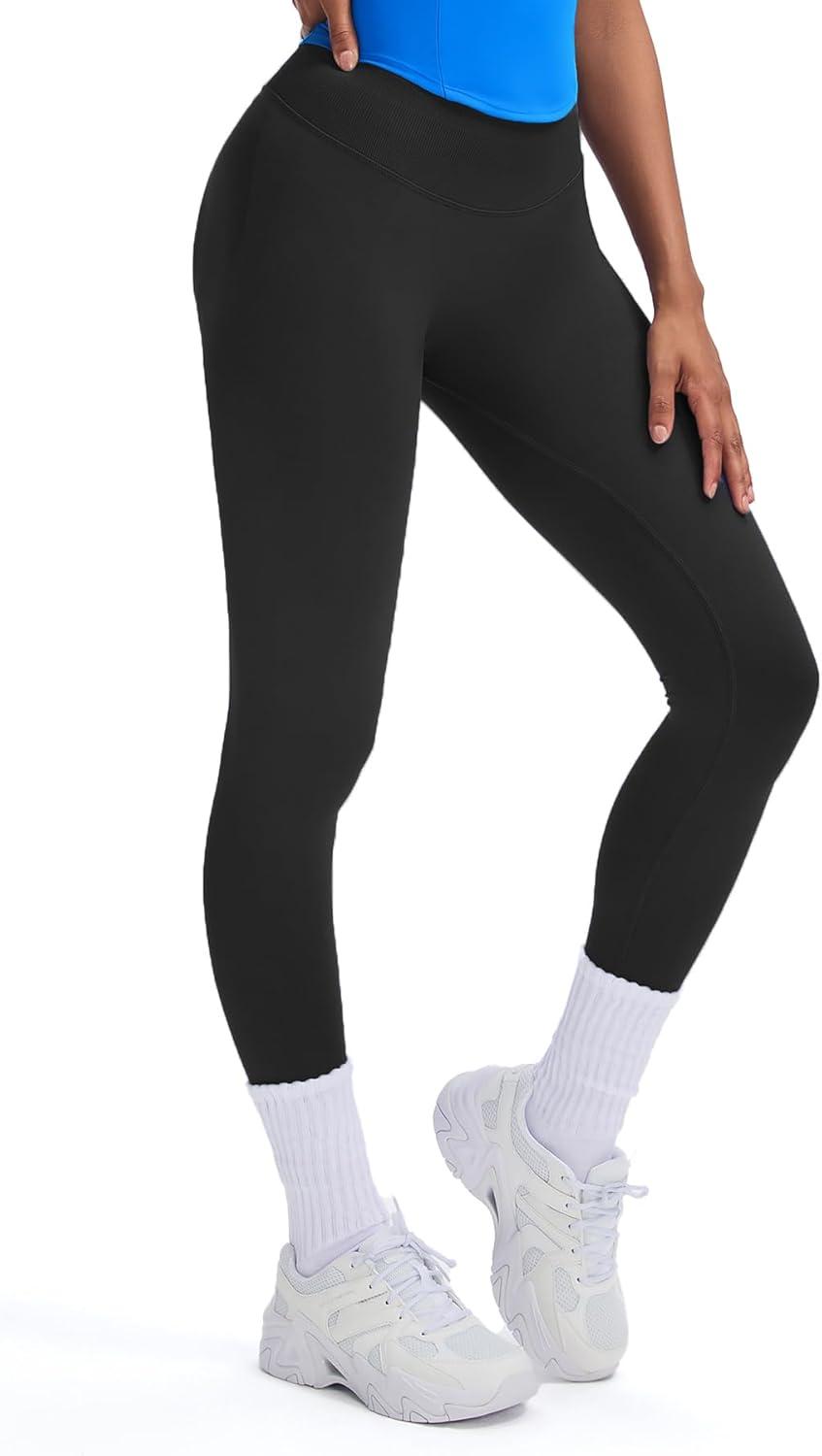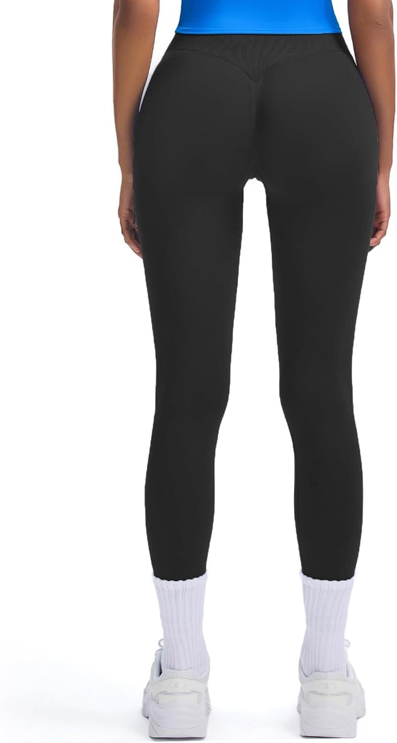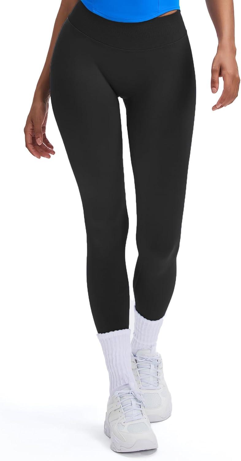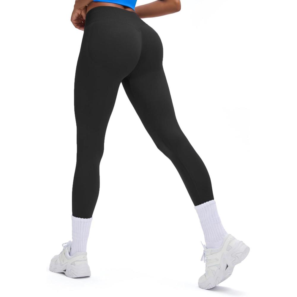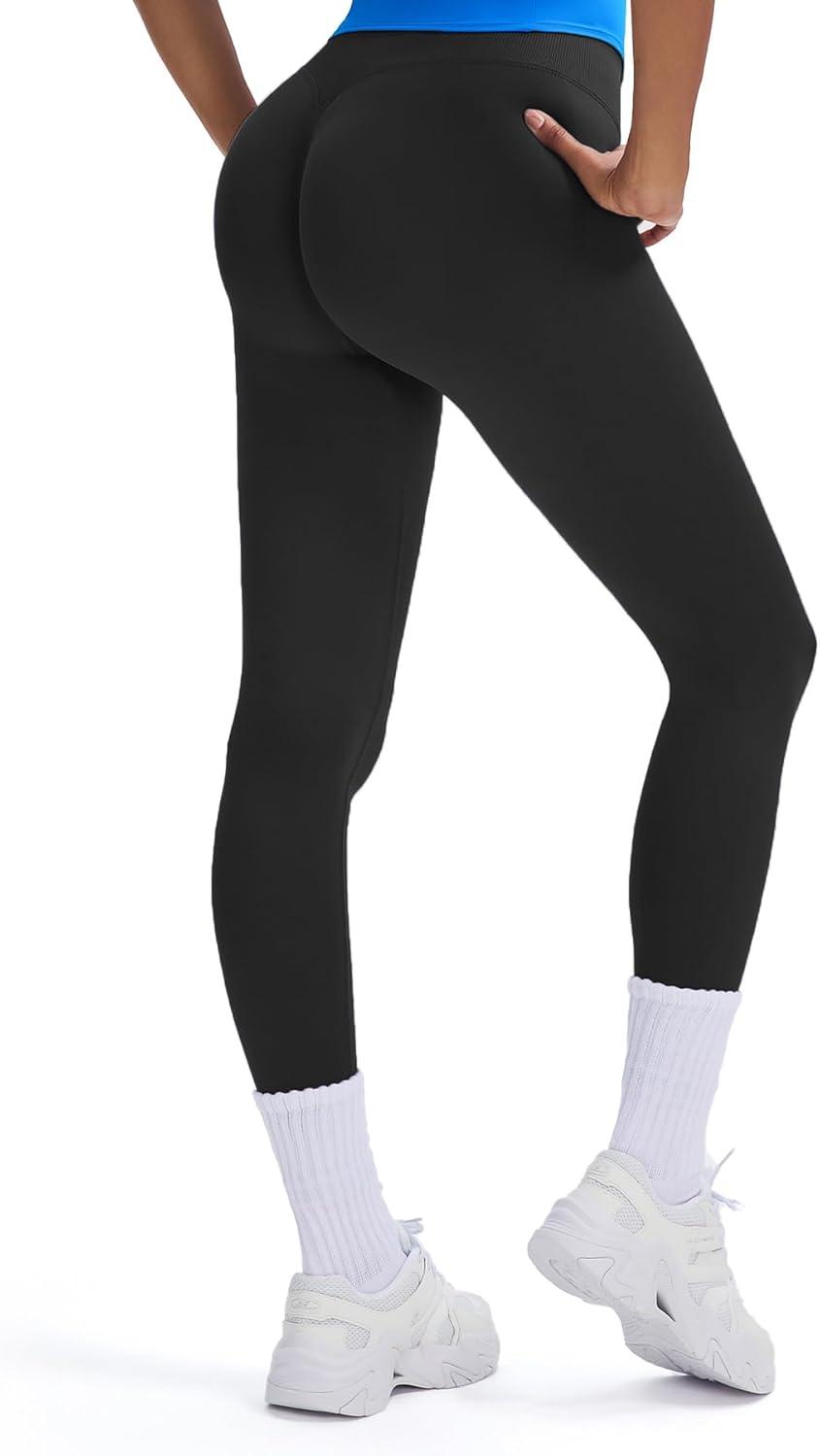 Aoxjox Women’s Impact Seamless Workout Leggings Hidden Scrunch Butt Lifting Low Waist Yoga Pants 26″(Black (Run Small Size Up))