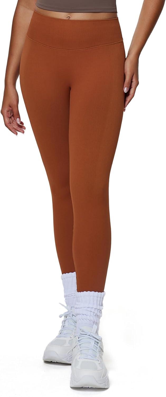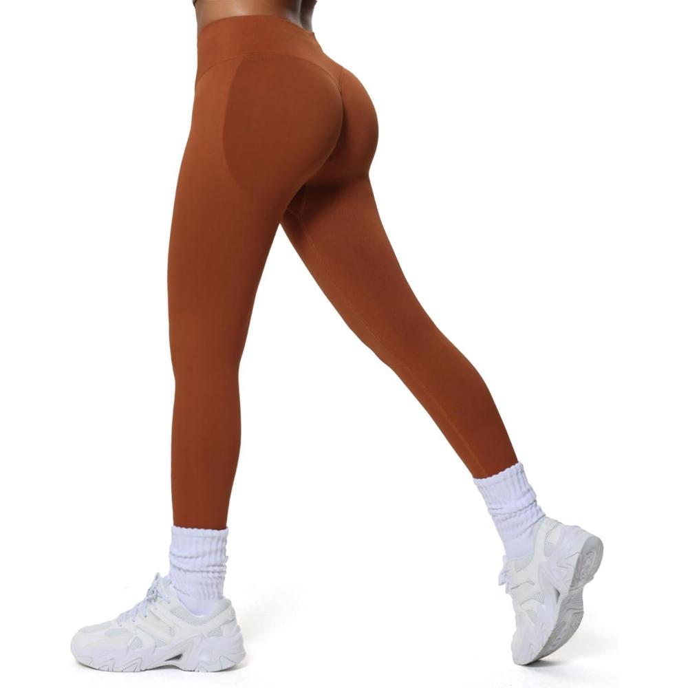 imageAoxjox Womens Impact Seamless Workout Leggings Hidden Scrunch Butt Lifting Low Waist Yoga Pants 26quotCaramel Brown New Fabric  Ture to Size