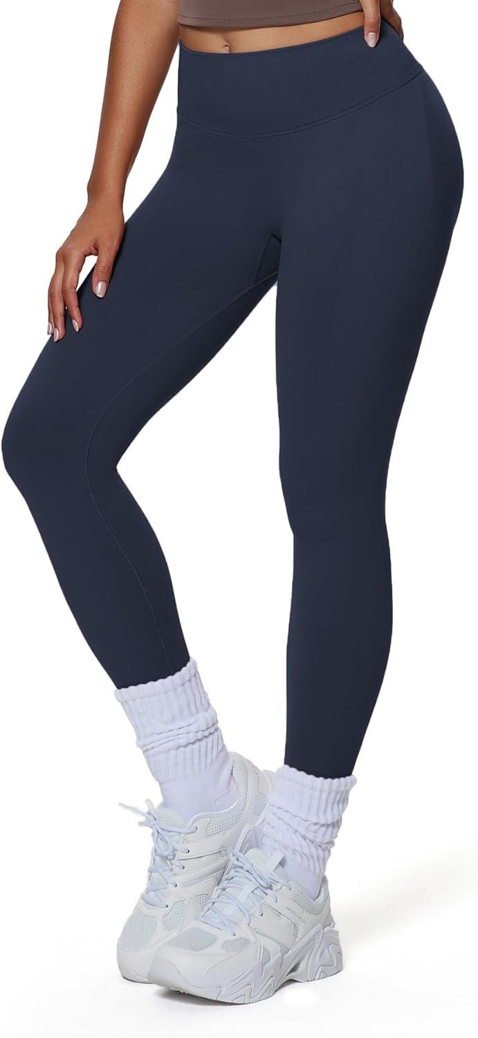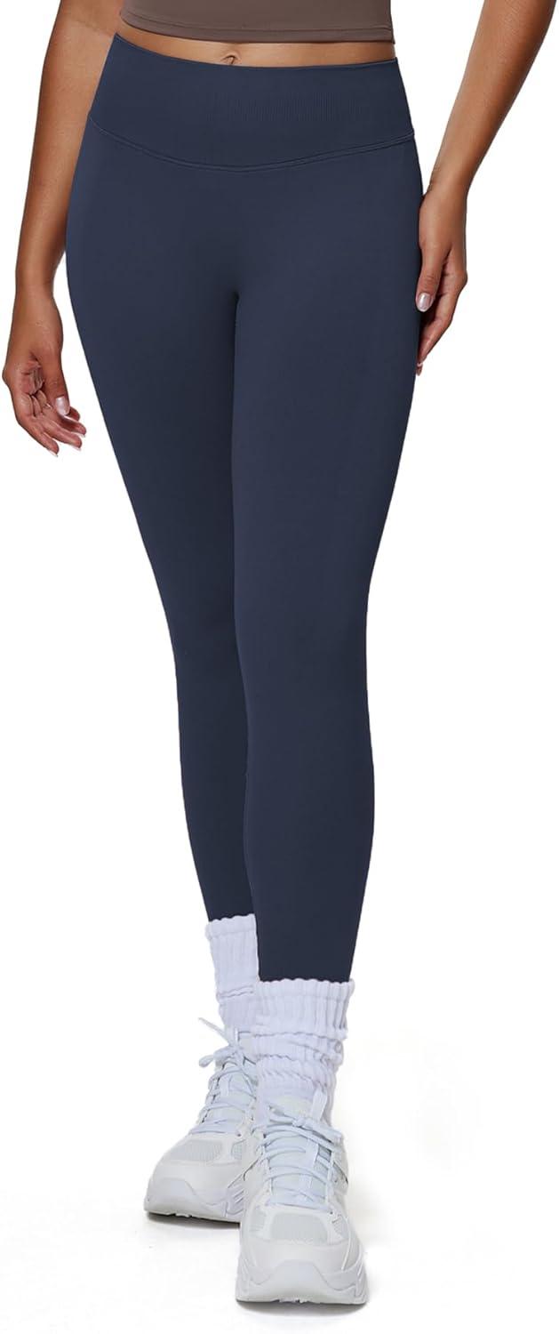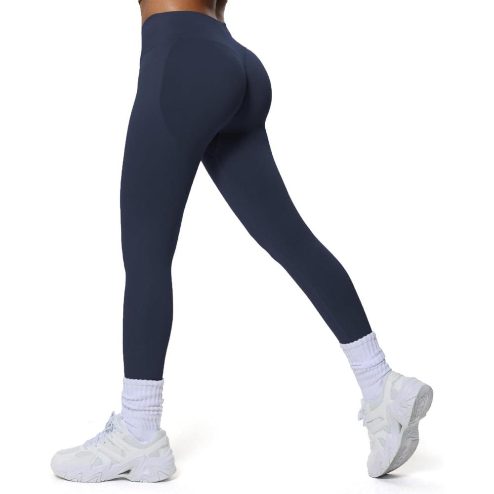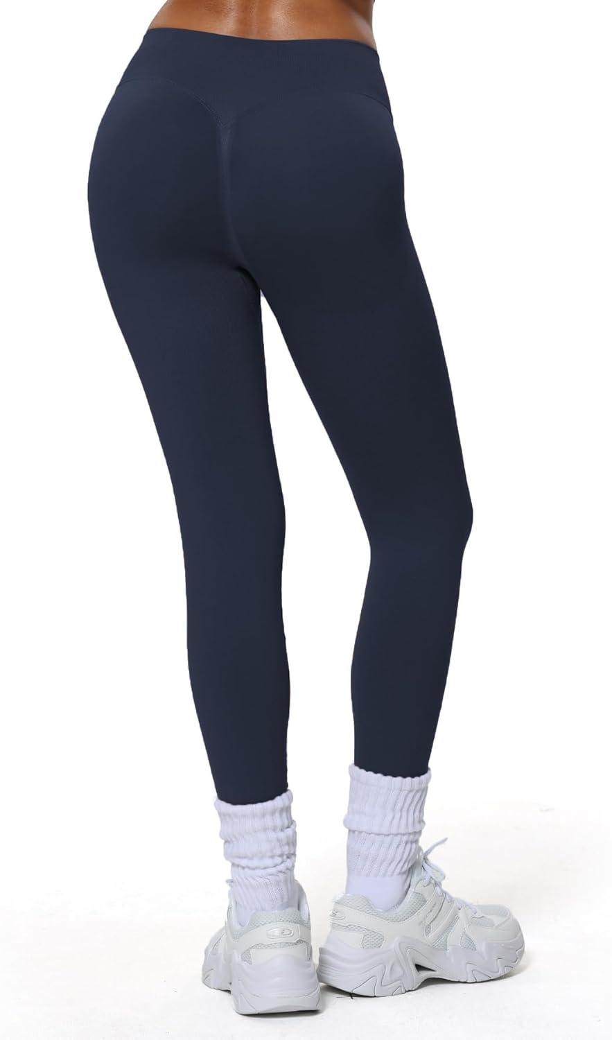 Aoxjox Women’s Impact Seamless Workout Leggings Hidden Scrunch Butt Lifting Low Waist Yoga Pants 26″(Dark Navy (New Fabric Ture to Size))